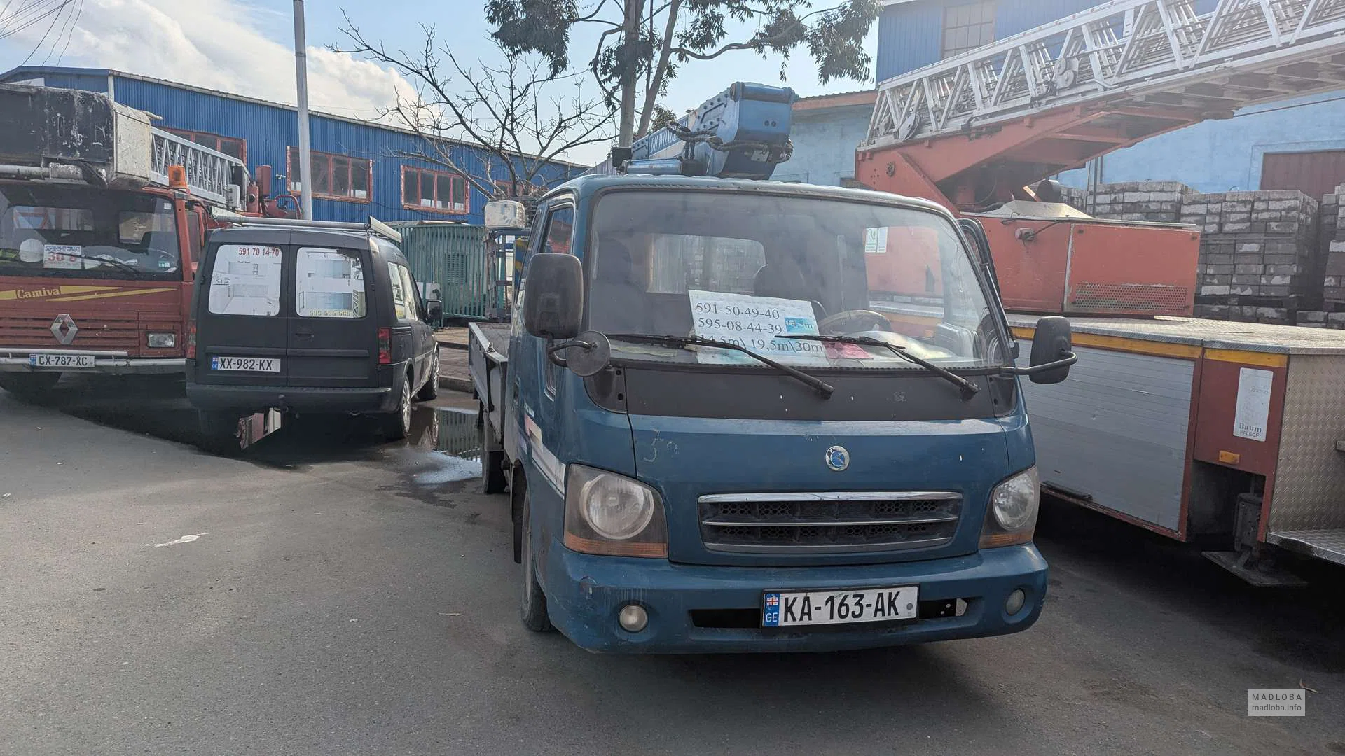 Автомобиль марки Bongo, синего цвета, в рабочем состоянии. Предусмотрена быстрая подача по городу. Высокая манёвренность, компактные размеры и простота в управлении.