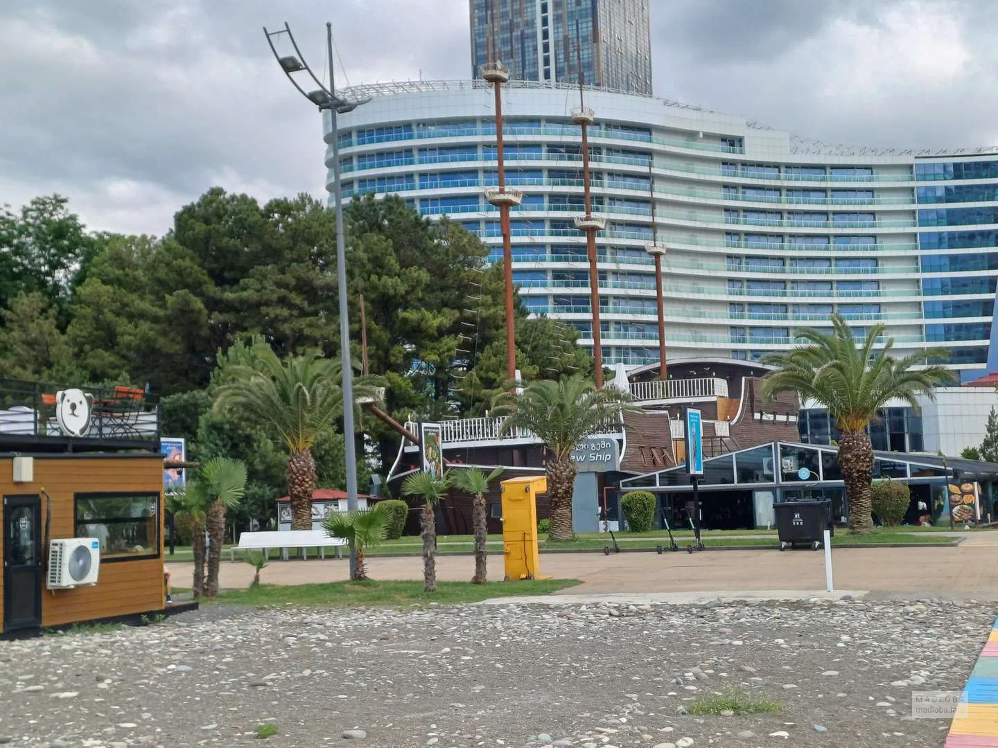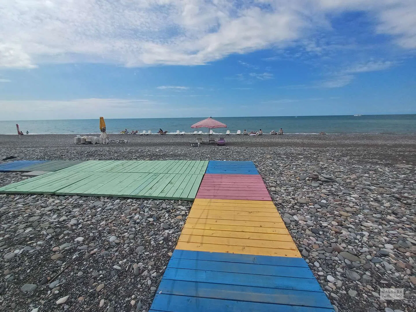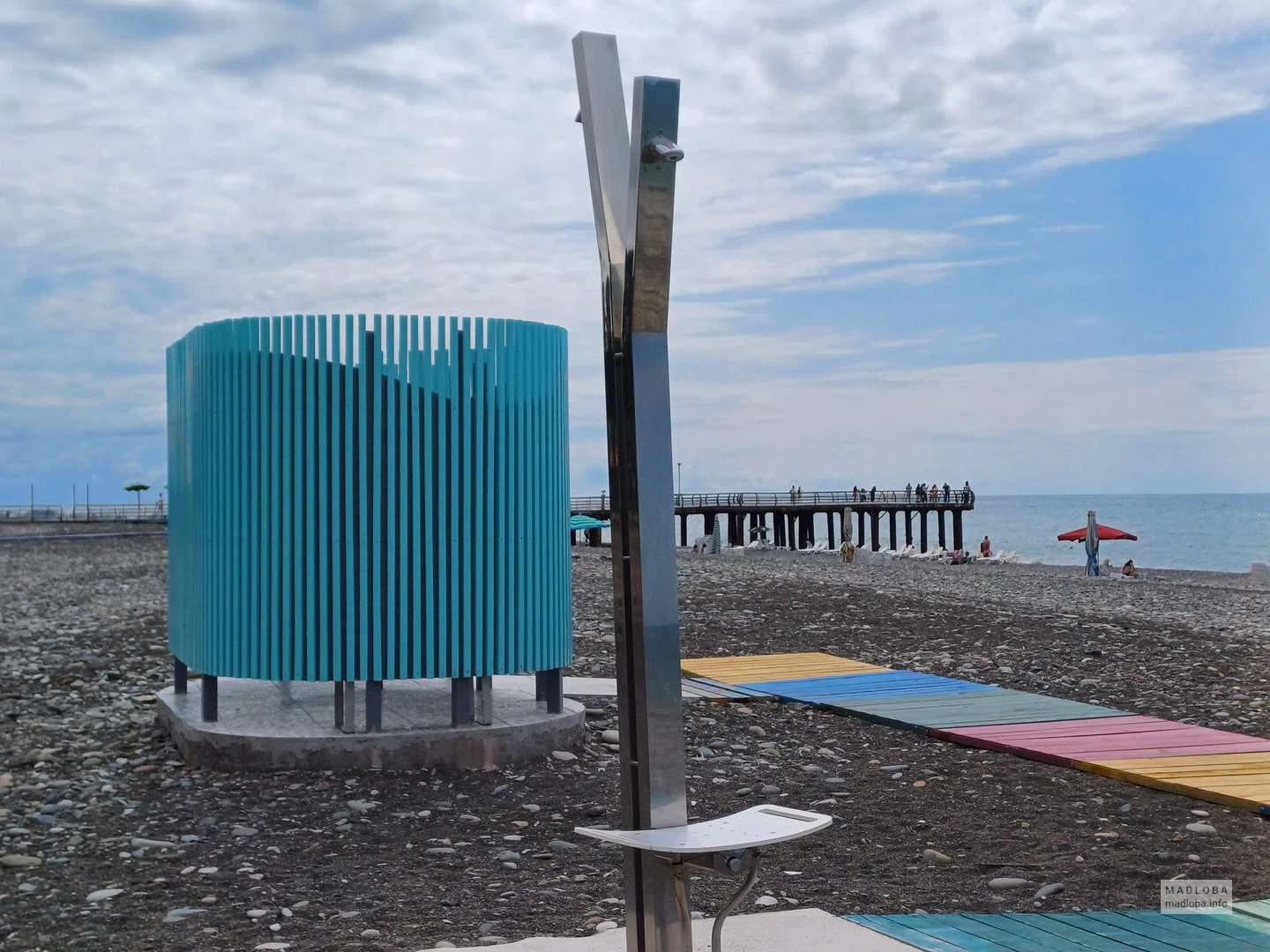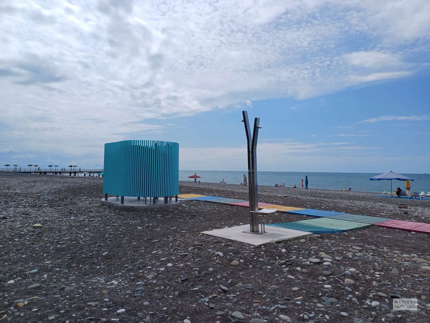 🌊 Этот пляж в Батуми — один из немногих, специально обустроенных для комфортного и безопасного отдыха людей с ограниченными возможностями передвижения. Он расположен напротив ресторана New Ship, на территории, которая на картах отмечена как «Пляж справа от пирса».