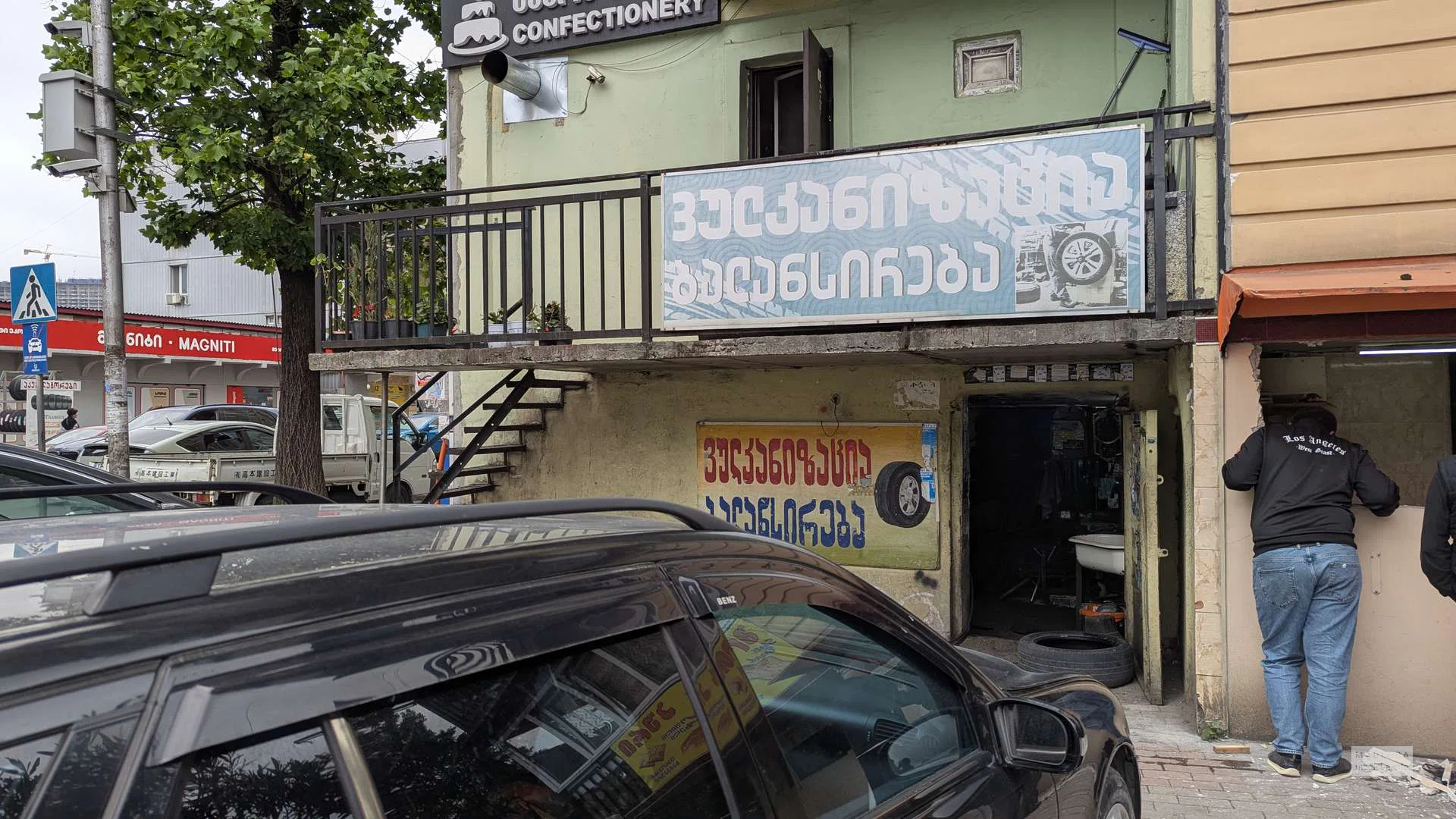 Автосервис шиномонтажа на улице Галактиона Табидзе, 25 в Батуми выполняет балансировку колёс, замену и ремонт шин. Работы проводятся на месте, возможен срочный приём без предварительной записи.