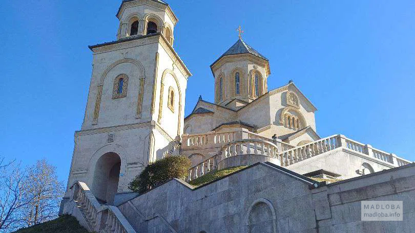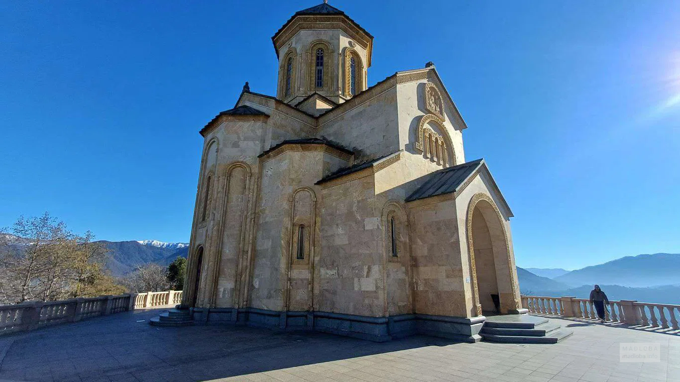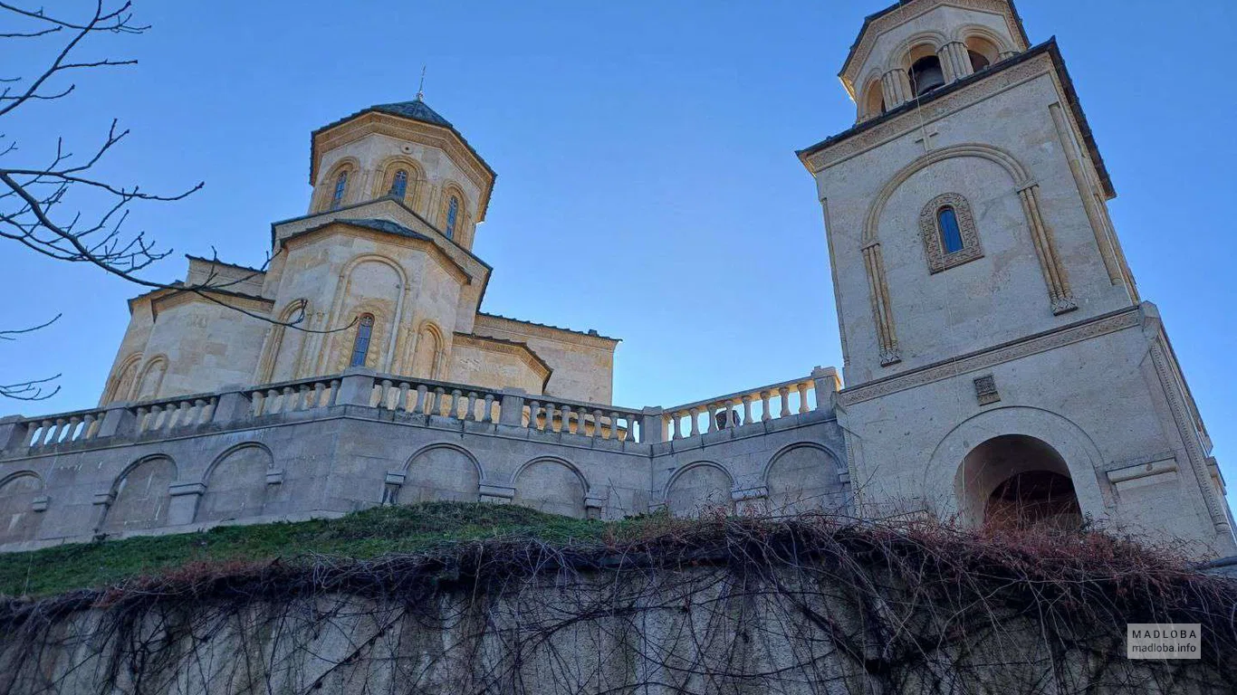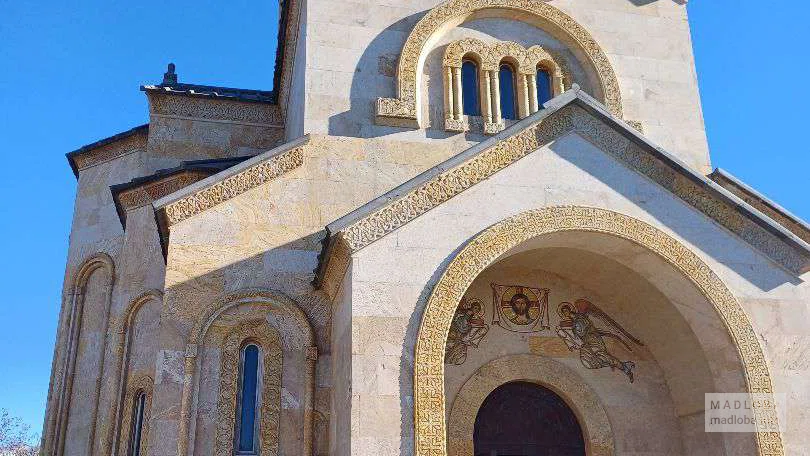 Вокруг церкви находится монастырь. Церковь выполнена в традиционном грузинском стиле, характерном для религиозных сооружений. Она богато украшена резьбой, орнаментами и фресками. Позади храма расположен женский монастырь, поэтому все служительницы здесь - женщины.