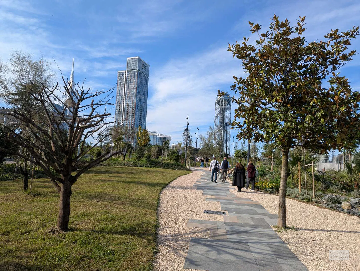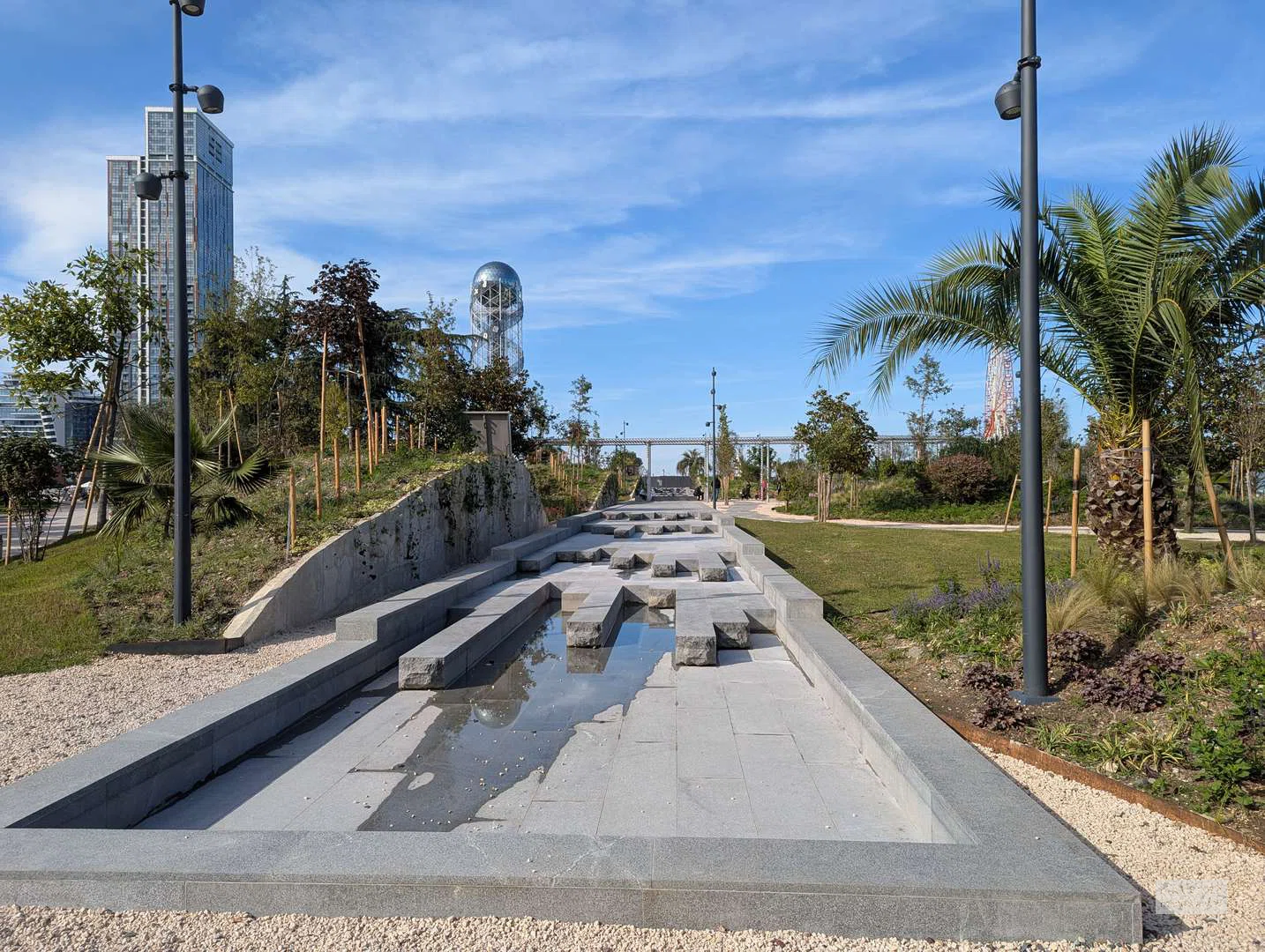 New Park расположен у Алфавитной башни в Батуми и стал новым символом обновлённого прибрежного района. На месте бывшей башни Чачи появилось просторное зелёное пространство с продуманным ландшафтом, где сочетаются природа, архитектура и комфорт.