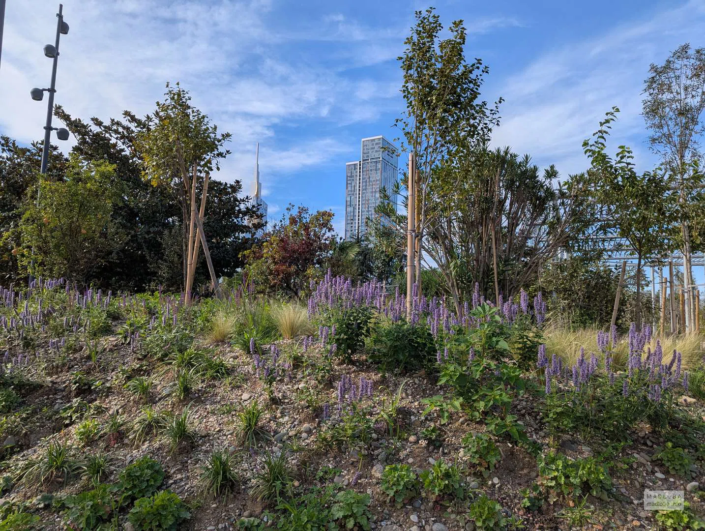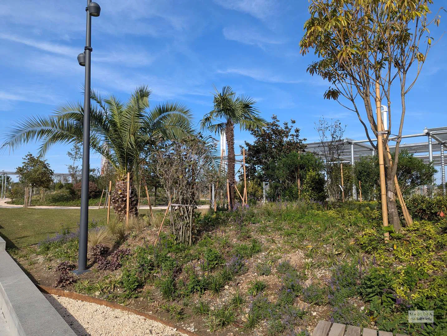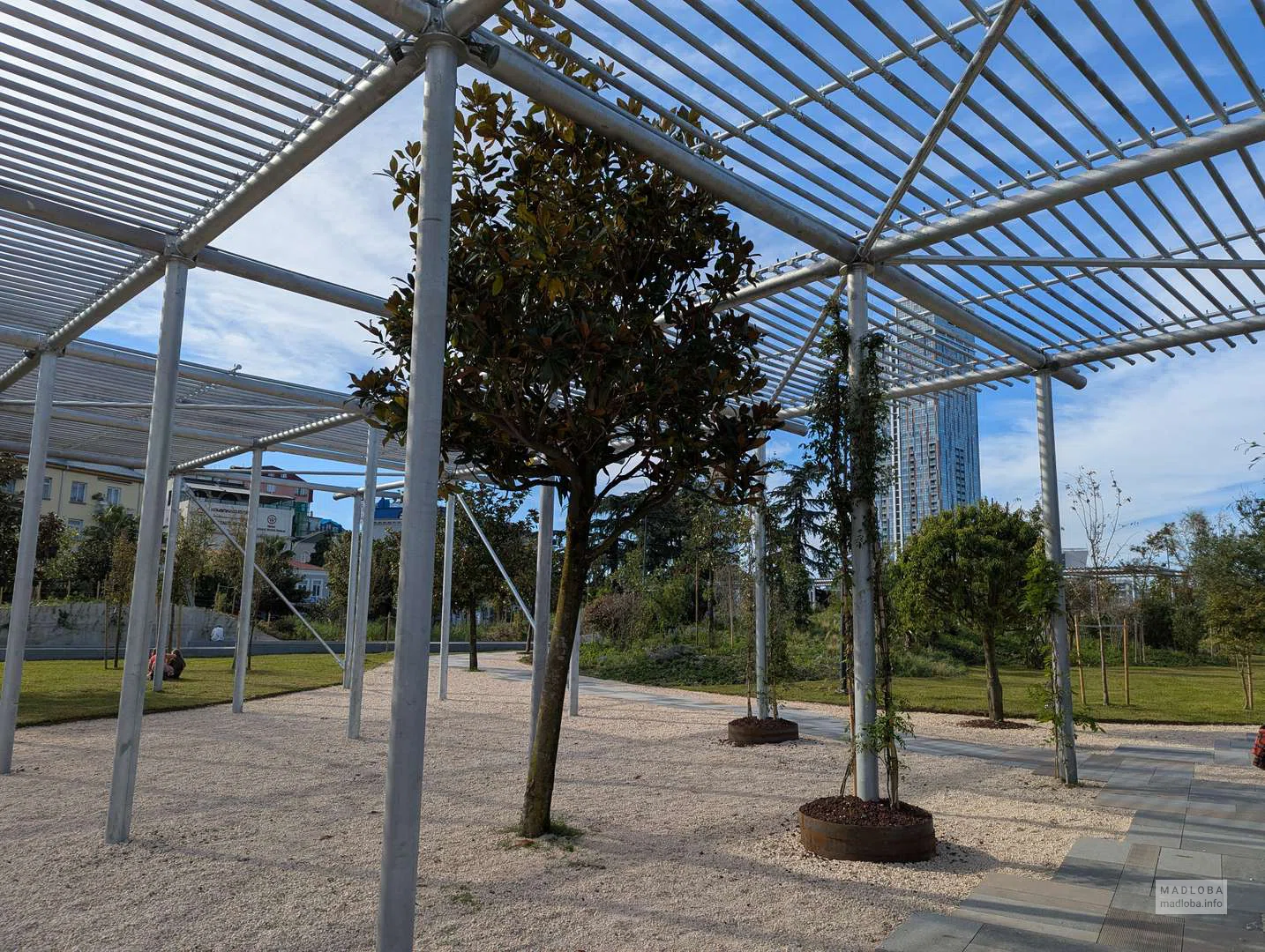 На территории сохранили старые деревья и высадили сотни новых, включая редкие породы. Вдоль дорожек растут пальмы и декоративные кустарники, а прогулочные маршруты соединяются с Батумским бульваром. Среди зелени расположились фонтаны, зоны отдыха и арт-объекты, которые придают парку характерный облик.