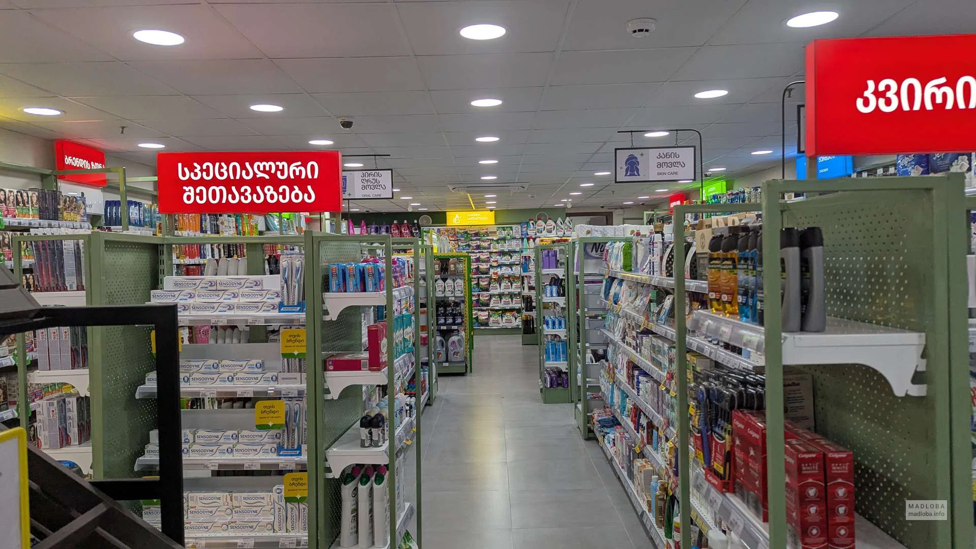 Чистый и просторный торговый зал удобно разделён на зоны: бытовая химия, детская гигиена, косметика, парфюмерия, средства по уходу за полостью рта и волосами. Продукция локальных и международных брендов, регулярные акции и удобные навигационные таблички делают покупки быстрыми и комфортными.