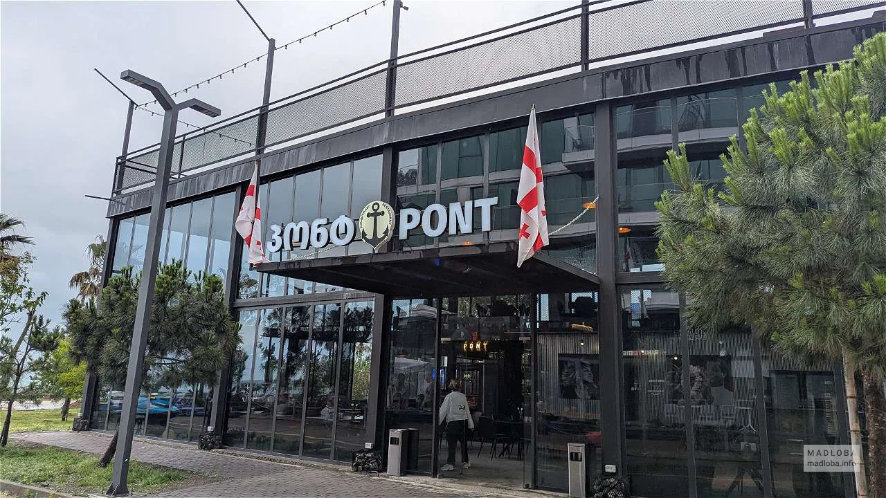 Ресторан Pont — это современное место у самого моря, где сочетаются стильная архитектура, стеклянный фасад и грузино-европейская кухня. Заведение выделяется лаконичным чёрным фасадом и флагами Грузии у входа, создавая атмосферу уюта и национального гостеприимства.