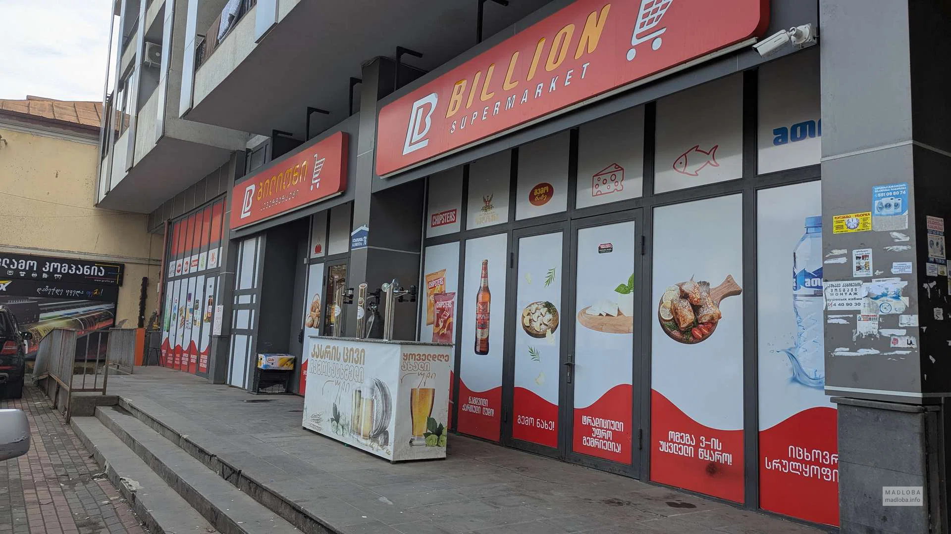 Billion — это супермаркет в Батуми на улице Лермонтова, 76, предлагающий широкий ассортимент продуктов, напитков и товаров первой необходимости. Здесь можно купить всё — от свежего хлеба до фасованных закусок и напитков.