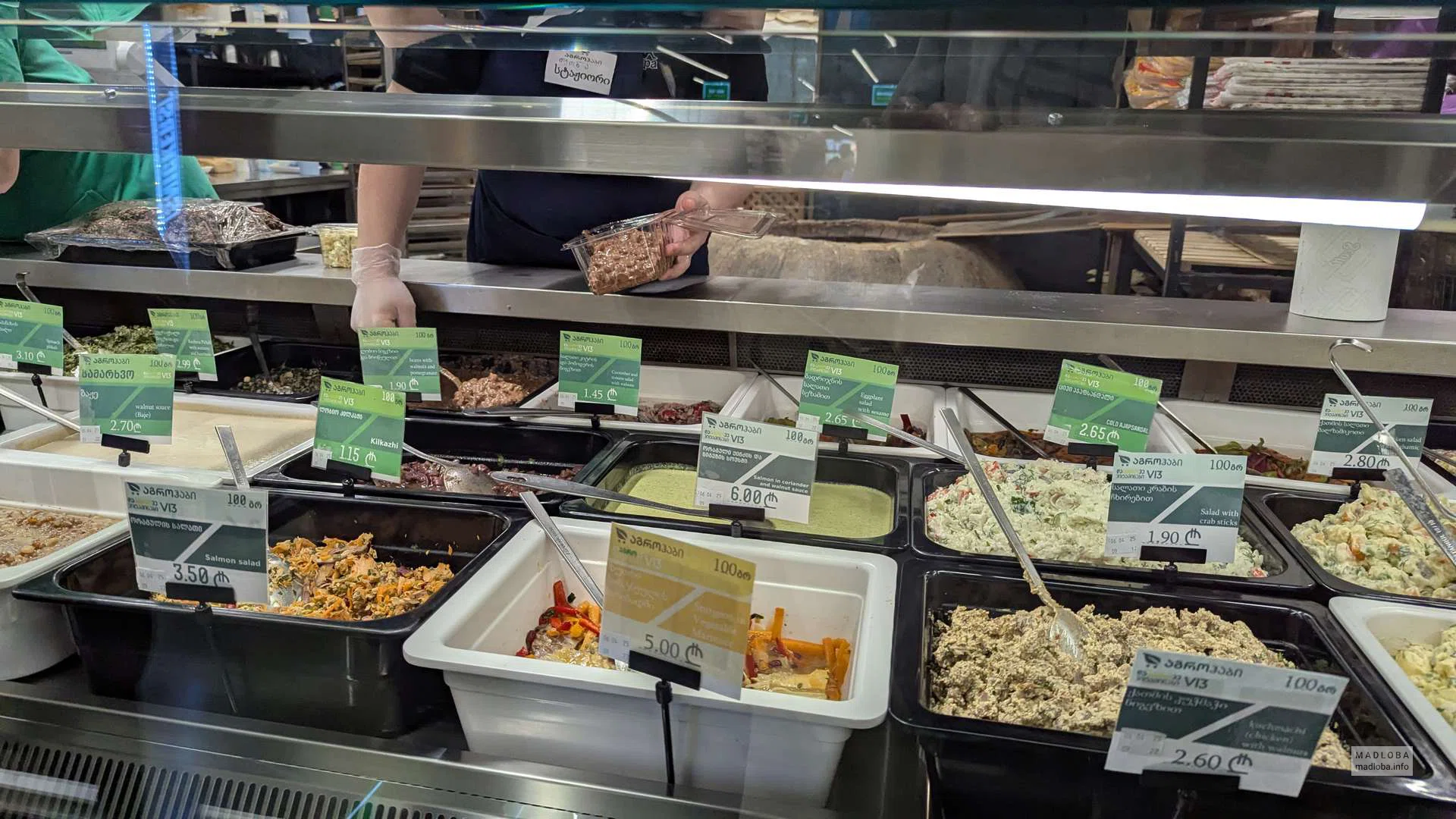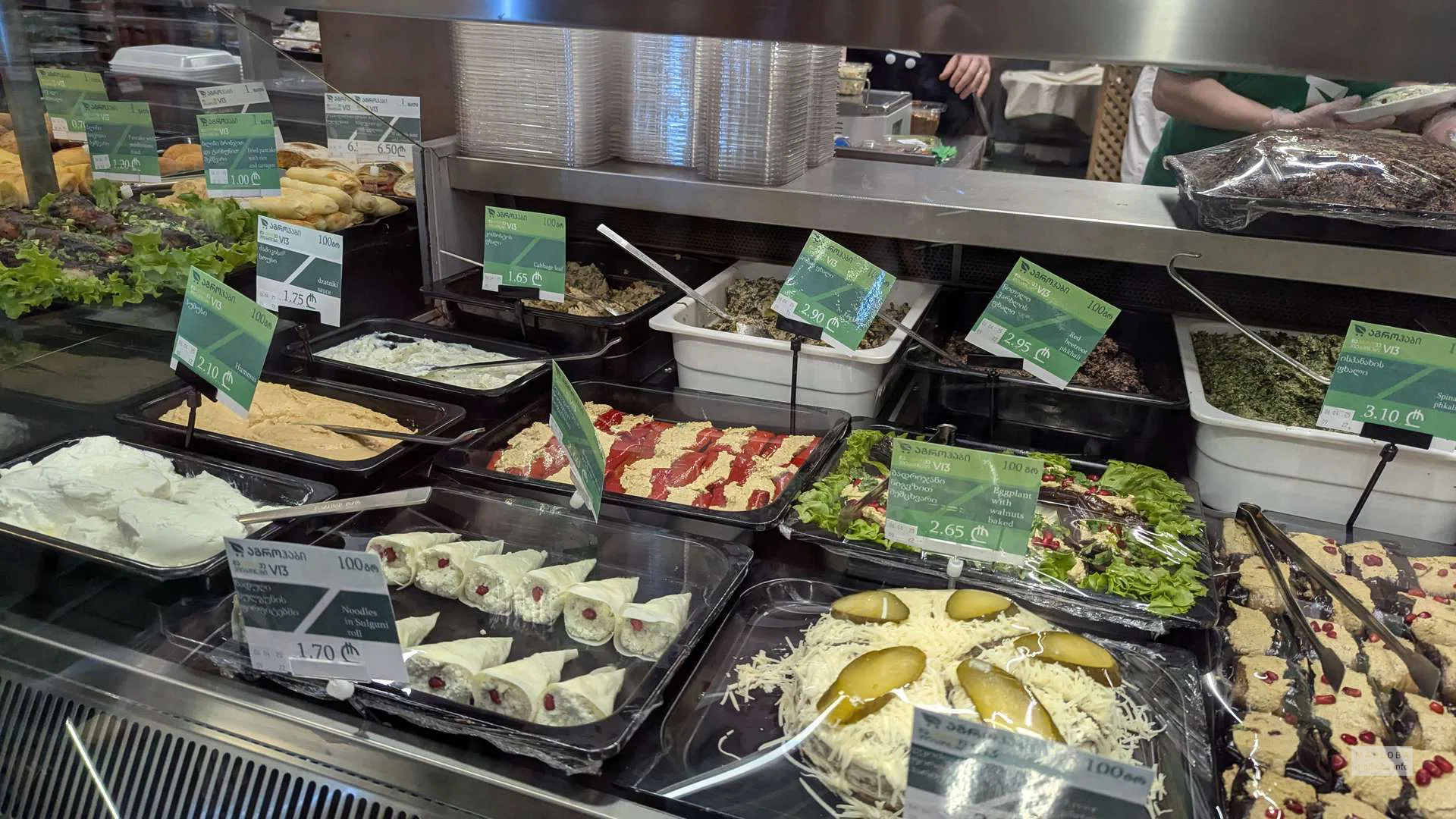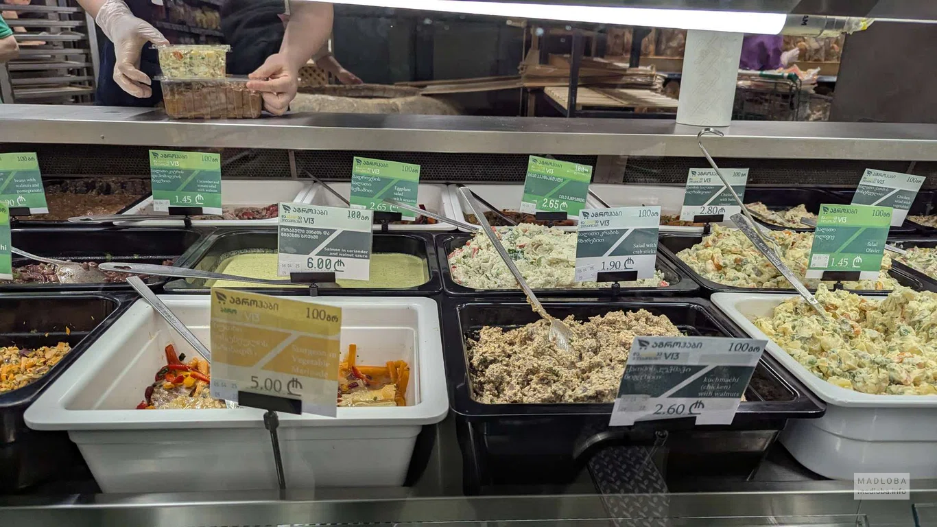 Отличный выбор продуктов, хотя цены чуть выше, чем в Carrefour. Часто покупал здесь мясо и багет. Кондитерские изделия на хорошем уровне. Красная рыба приятно удивила, а вот роллы не впечатлили. Полуфабрикаты, от долмы до пиццы, высокой пробы, как и готовые блюда – салаты, мясные изделия, гарниры. Есть нарезки и сыры известных брендов. В здании находятся отдельный магазин с алкогольной продукцией, где приобретал японский виски по приемлемой цене, также есть винный магазин, аптека и небольшое кафе. Также присутствуют банкоматы BoG.