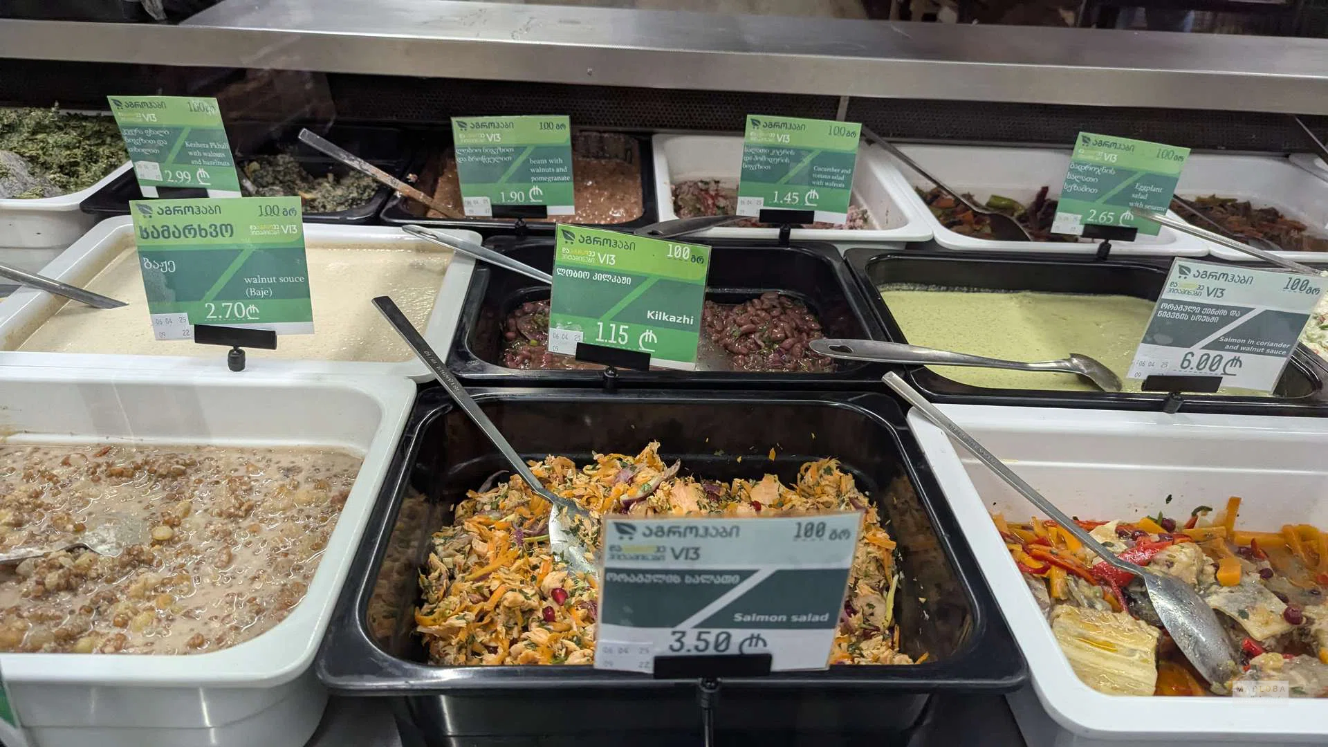 The fish section confused me big time! No price tags anywhere, and when I asked, the seller seemed convinced that’s his job—to tell me what's in the package and at what price. Salmon steaks with scales still on? Seriously, who cleans salmon steaks at home? Elsewhere, some shelves had labels in English and Georgian, but they were far from universal. The tea section was a wild goose chase too—found green tea hidden behind layers of black tea boxes. Hope for better organization next time!