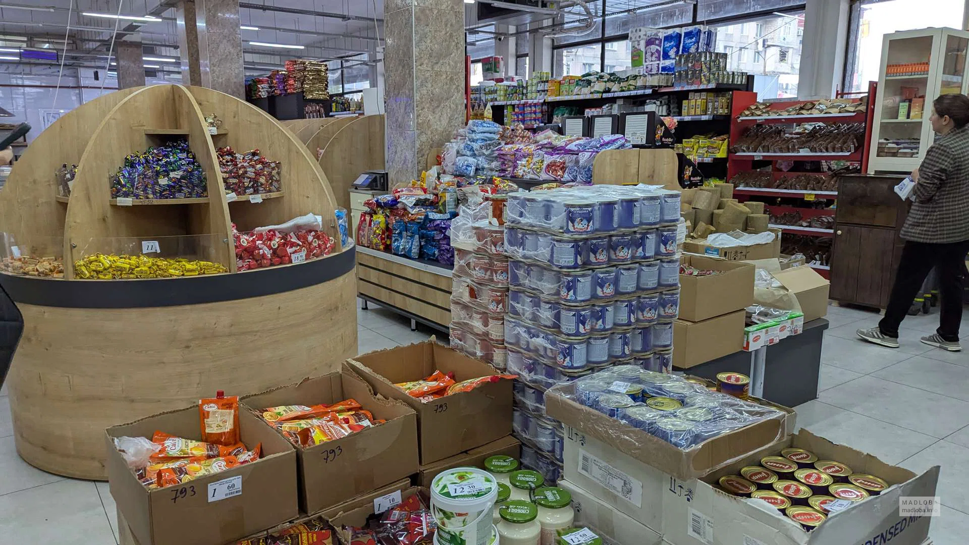 Ассортимент включает фирменные колбасы, готовую кулинарию, молочную продукцию, сладости и товары повседневного спроса. Установлены платёжные терминалы.