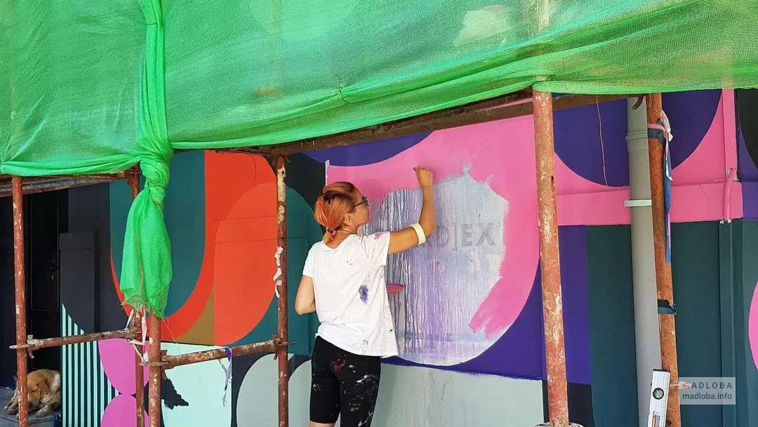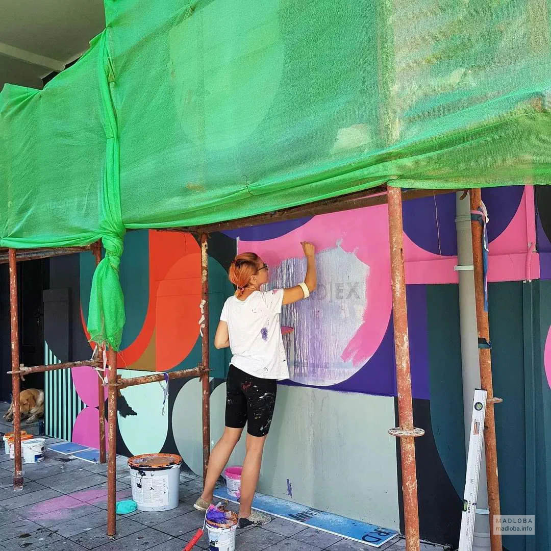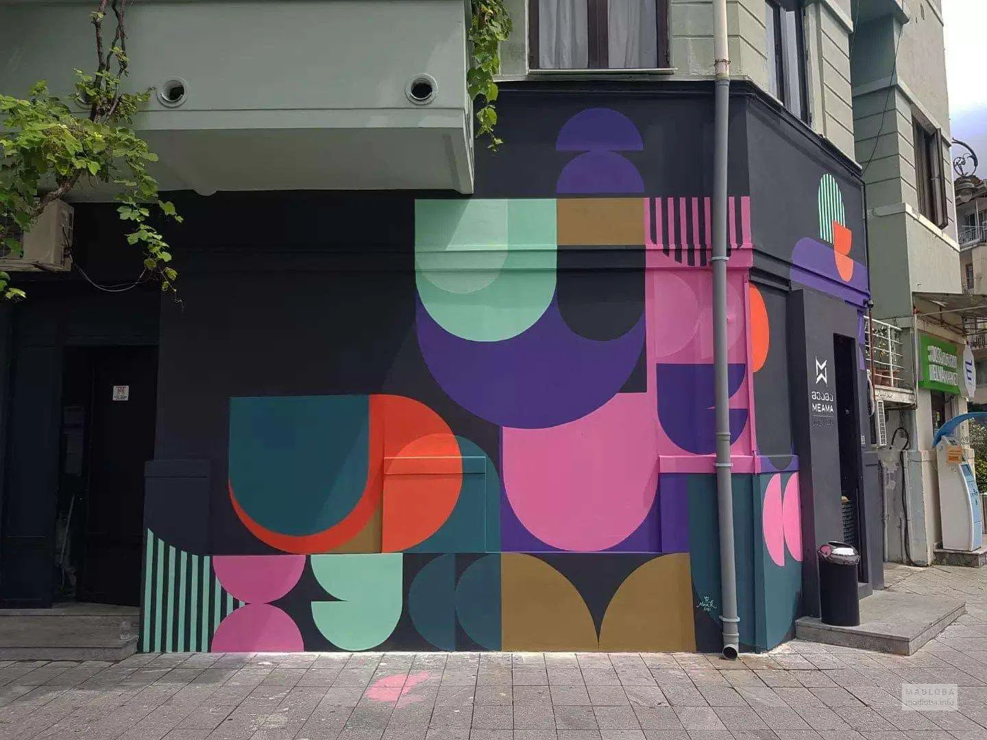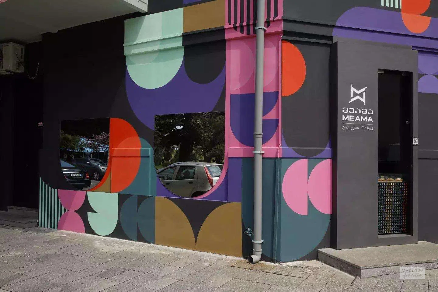 Мурал для кофейни "MEAMA" в Батуми - это настоящее произведение искусства, украшающее город. Насыщенные цвета и замысловатый дизайн привлекают взгляд и заставляют останавливаться, чтобы рассмотреть каждый элемент. Зеркальные детали в композиции добавляют глубины, делая мурал частью окружающего мира. Хорошее решение разнообразить городское пространство, привнося в него креатив и новые идеи.