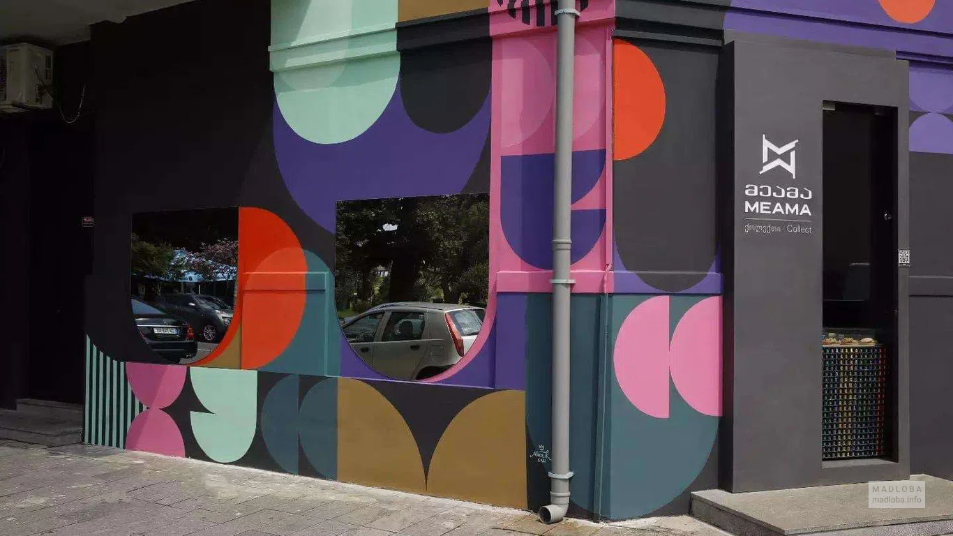 Мурал, украшающий фасад кофейни "MEAMA", словно отражает многогранность и разнообразие жизни в городе. Этот арт привлекает взгляды прохожих своими насыщенными цветами, в то время как игра с логотипом завораживает и вызывает желание рассмотреть каждый элемент поближе. Зеркала, ловко встроенные в композицию, придают произведению глубину, делая его частью окружающего мира.