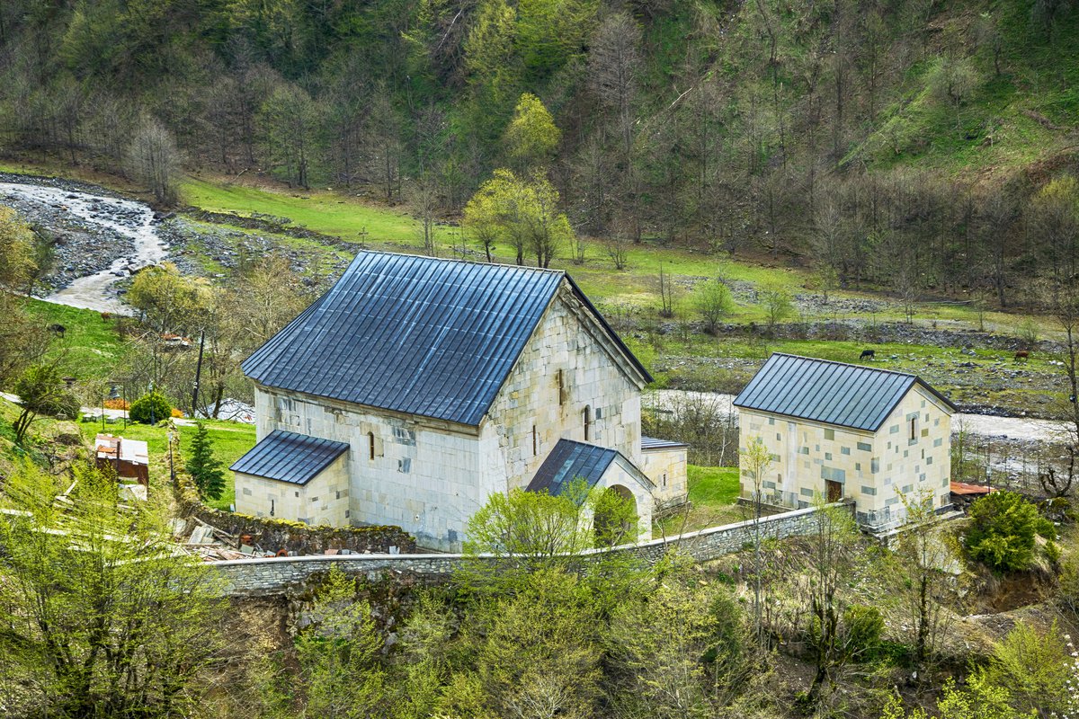 Древние достопримечательности Грузии церковь в Схалте 13 век. Схалтский монастырь в Аджарии.