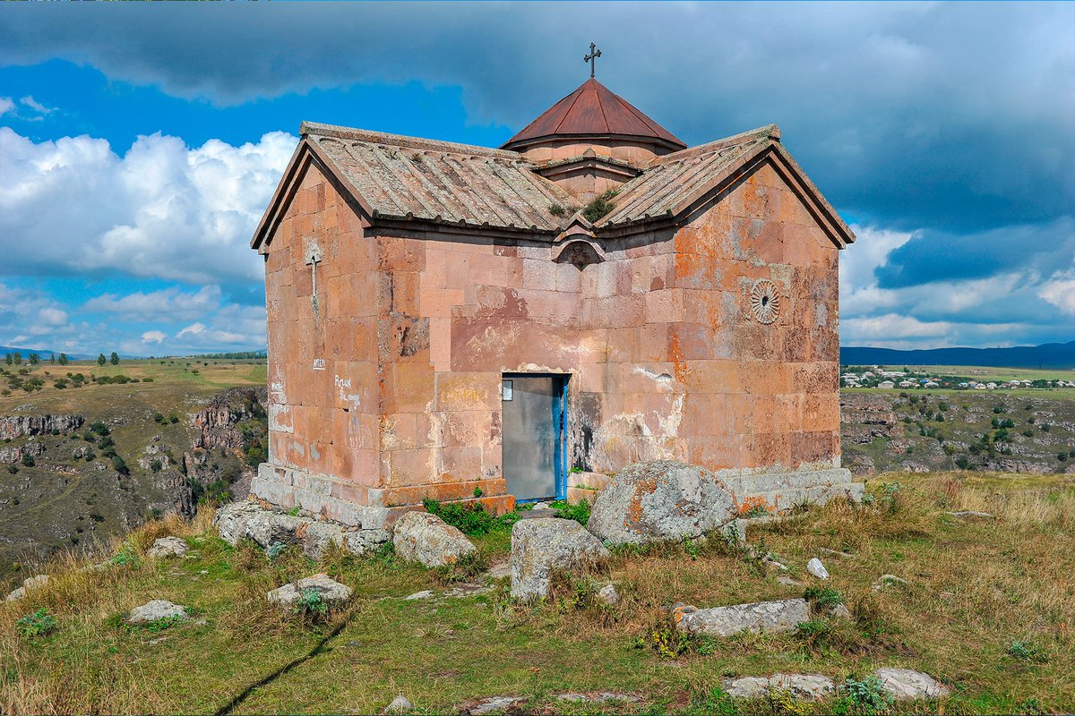 Строение имеет два входа – в южной стене западного рукава и в западной стене северного рукава. Южная дверь покрыта большим тесаным камнем. На верхней части южной двери и на восточной стене есть древние таинственные надписи. Церковь была отреставрирована. К югу и северу от церкви можно увидеть надгробия и статуи лошадей, зрелище одновременно занимательное и мистифицирующее.