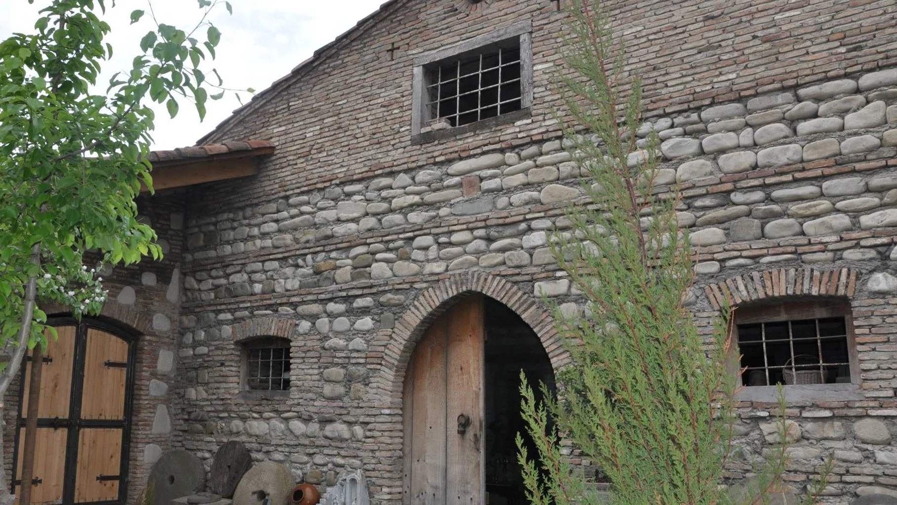 Когда подходишь к музею «Нумиси», сначала кажется, что это обычный сельский дом. 🏡 Белые стены из речного камня, немного кирпича, деревянная дверь, виноград по стенам — всё очень по-грузински. Но стоит зайти внутрь — и сразу чувствуешь, что это не просто здание, а место с историей.