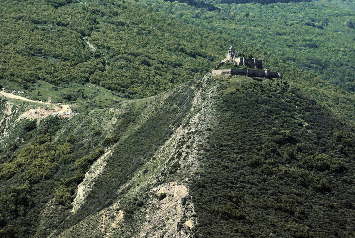 До самой церкви на машине доехать невозможно, от парковки придется карабкаться в гору. Склон усеян могильными плитами, последние захоронения совершались здесь около ста лет назад. Одновременно как-то и страшно и дух захватывал. Жалко нельзя добавить фото, я бы показала. С древних времен на вершине этого холма стоял храм Святого Георгия, а до него, говорят, был какой-то языческий храм. Само место успело отметиться и в истории государства – здесь неоднократно бывали и останавливались правители. Двойное кольцо крепостных стен говорит о том, что Гориджвари был важным стратегическим пунктом. Тот старый храм рухнул во время землетрясения 1920-го года. Несколько десятилетий место было заброшено, но к нашим дням возродилось. Когда я сюда ездил, велось строительство капитальной дороги к Гориджвари. Сейчас, полагаю, она уже готова.