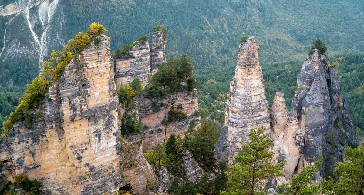 Божественный вид. Восхищению нет предела. Как по вершинам скал растут деревья, а вдали густой лес. Скалы словно застывшие гиганты наблюдают за природой. Идеальное место для скалолазов и экстремалов. Какой живописный вид откроется тем, кто достигнет вершины.Спасибо автору за информативную, красочную статью.
