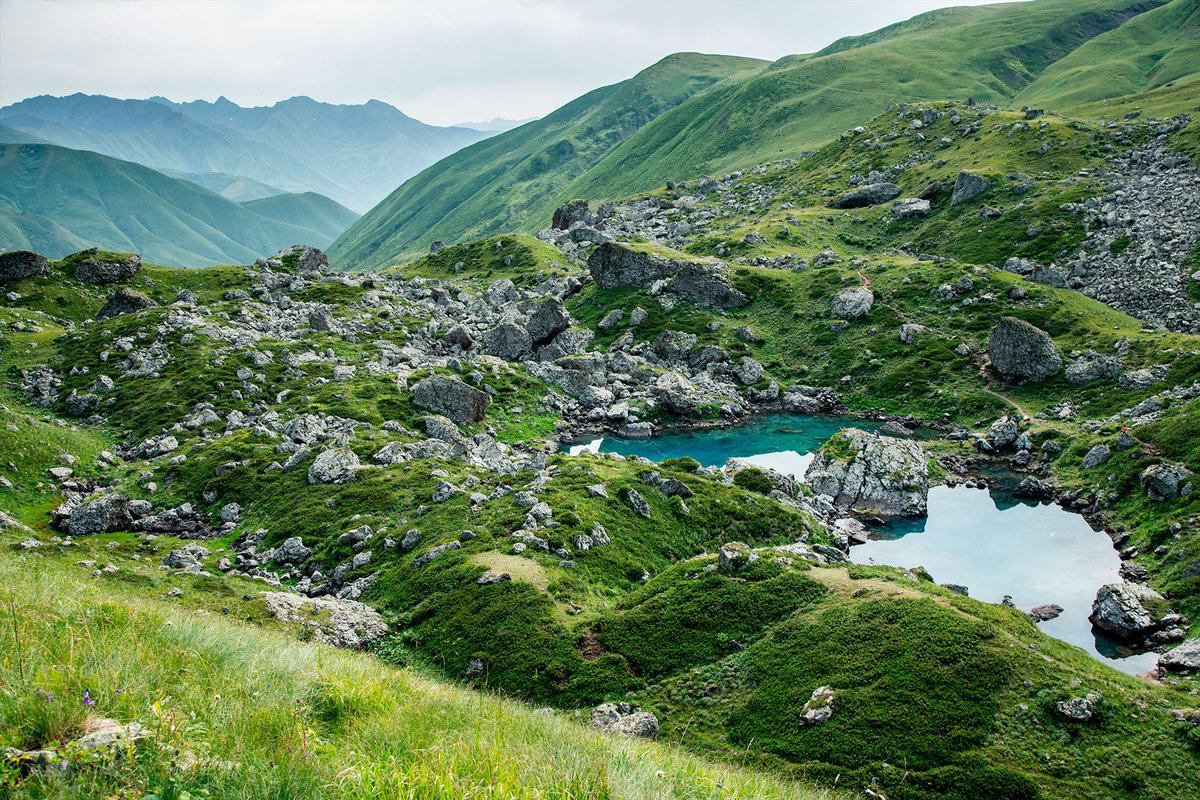 Двухдневный маршрут Джута - Абуделаури Цветные озера – Рошка. Легкий трек для новичков и опытных туристов.