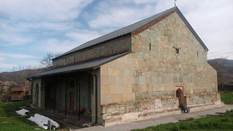 Храм имеет зальную конструкцию с боковыми приделами и цилиндрический свод, что является редким и уникальным для Грузии в этот период. Стены выложены из местного камня, а с юго-восточной стороны к храму примыкает портик, выполненный в более поздний период, между 1213 и 1223 годами. 🌄