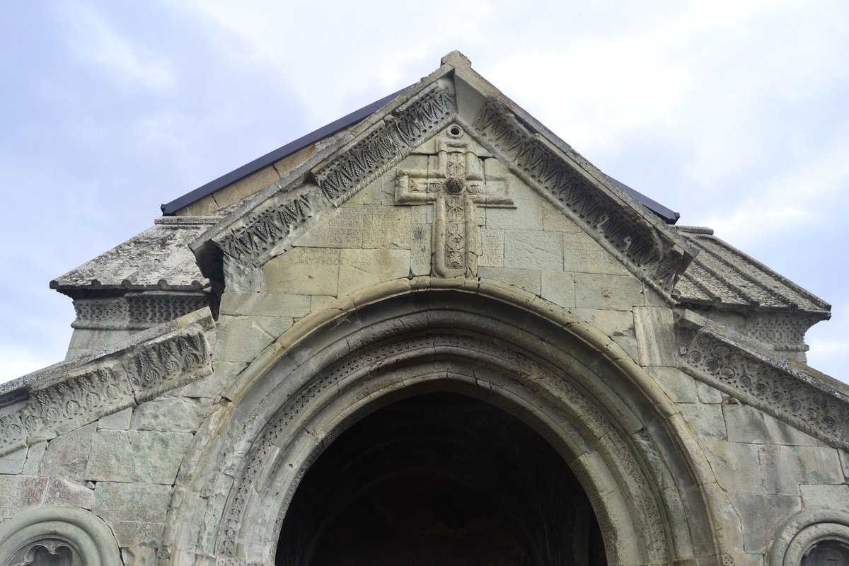 Особое внимание стоит уделить декорациям — рельефы, орнаменты и резьба по камню, особенно в портике. Эти элементы украшены растительными мотивами, а на фронтоне портика можно увидеть армянский хачкар, что дает нам важный культурный след связи с соседними народами. 🌿