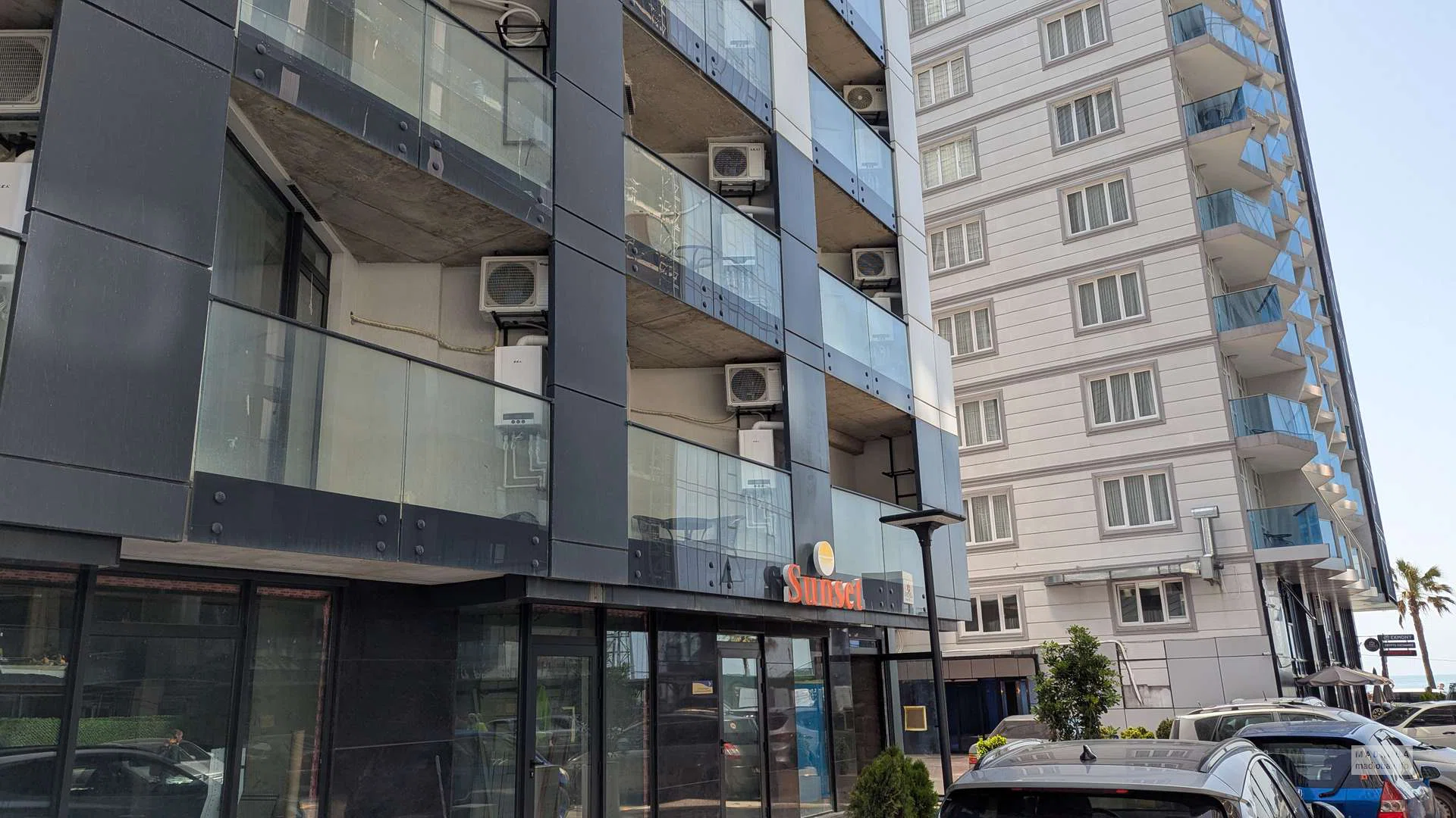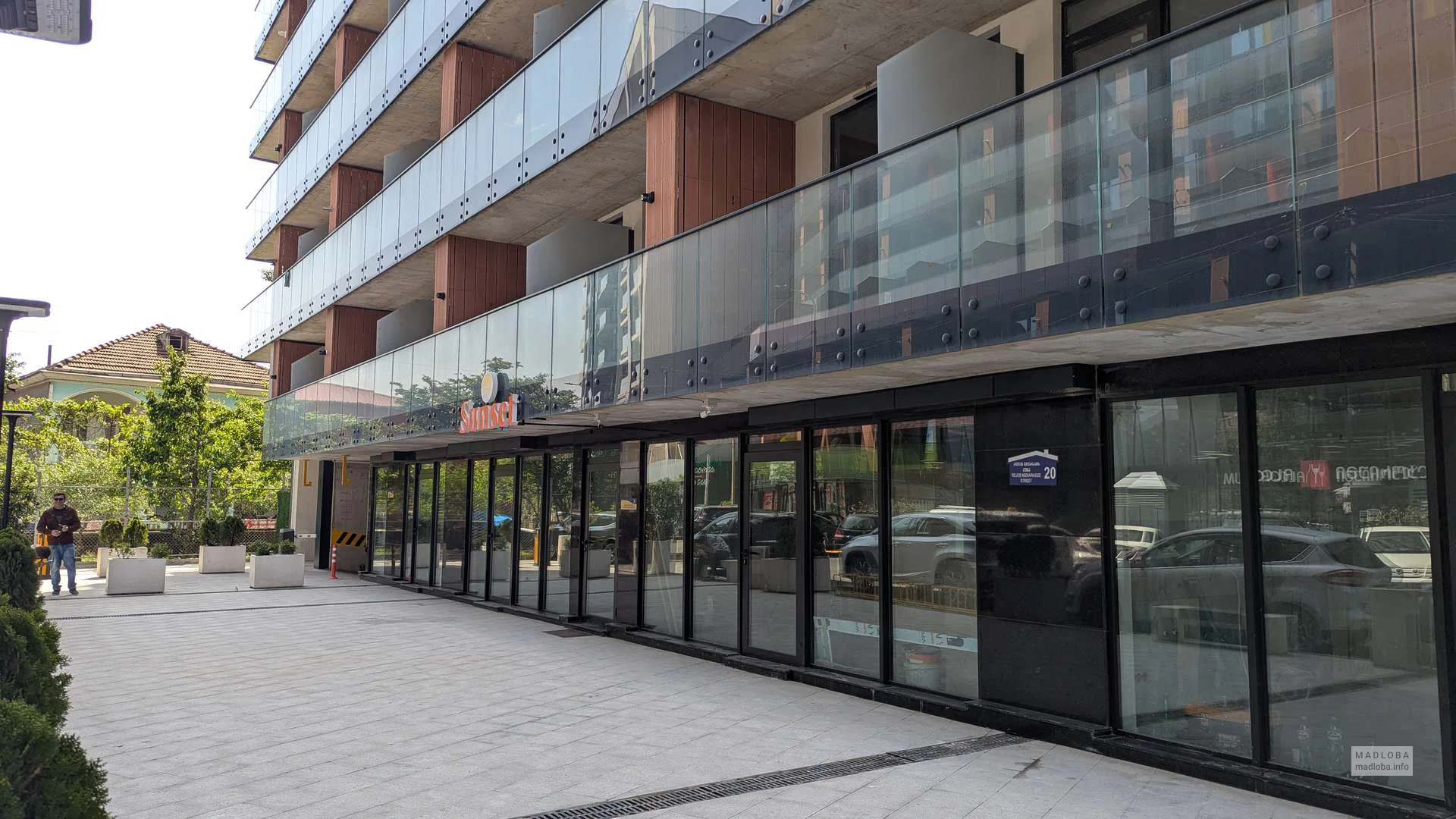 Apartment complex Sunset is located in Batumi, at Rejeba Nijaradze street, 20. The modern building with a dark facade and panoramic balconies overlooks the coast and is perfect for short-term or long-term accommodation by the sea.