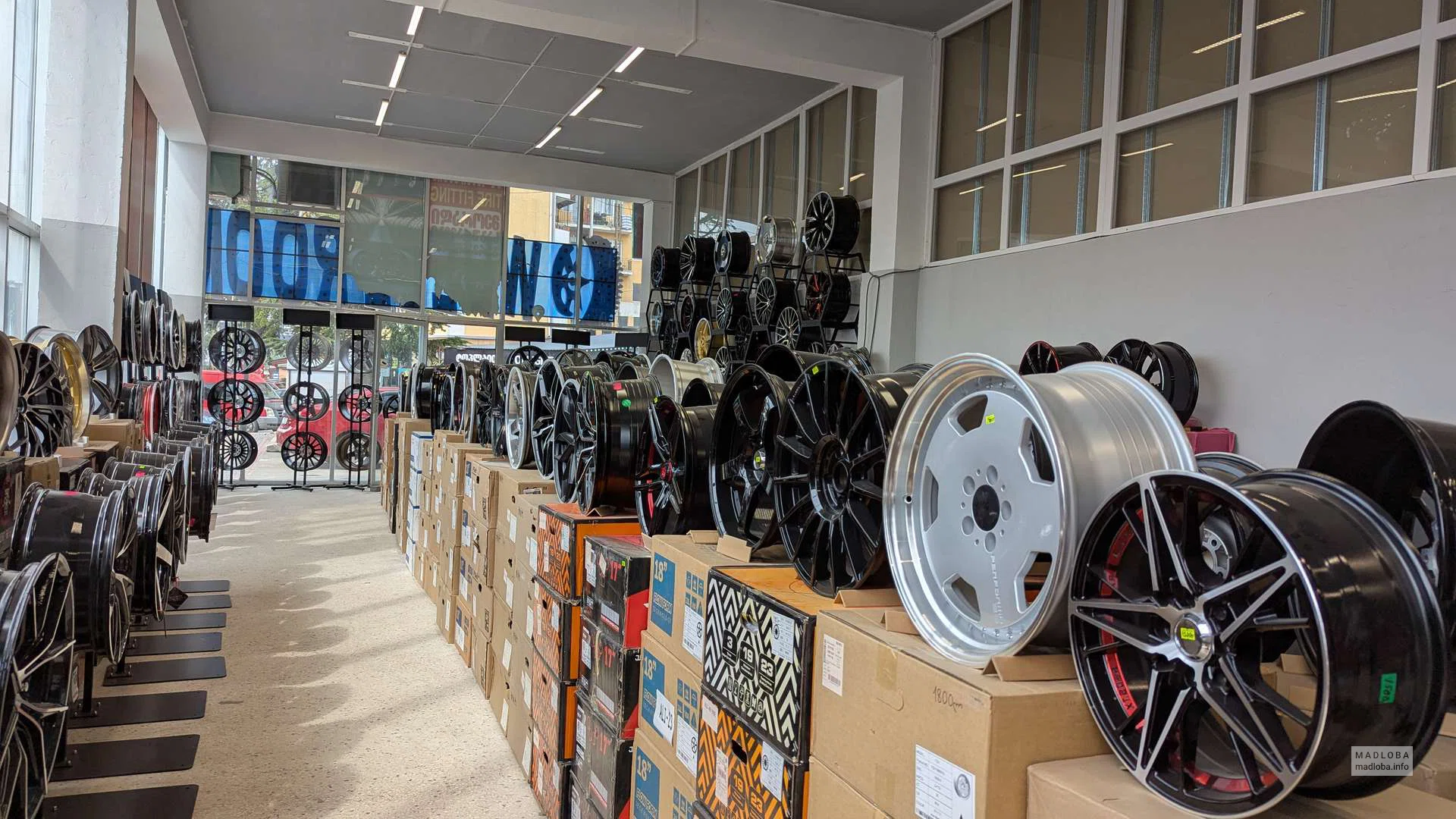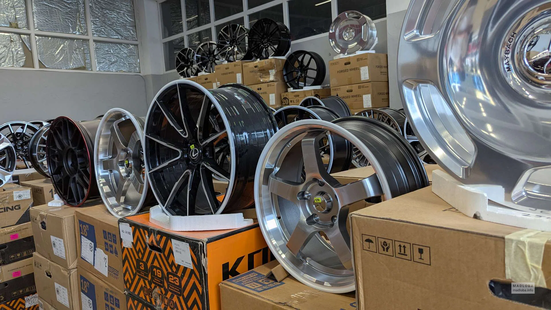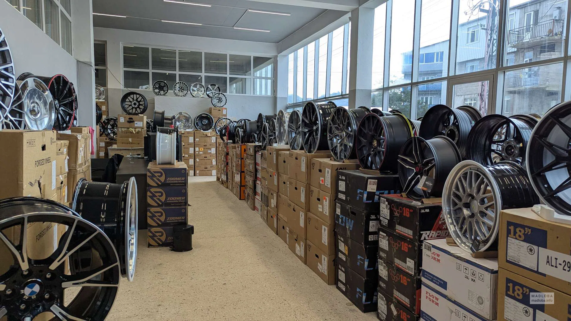 The car wheels and spare parts store on Orbeliani Street, 39 offers a large selection of cast and stamped wheels, auto parts, engines, suspension components and accessories. The sales area offers dozens of models of discs of various diameters and designs.