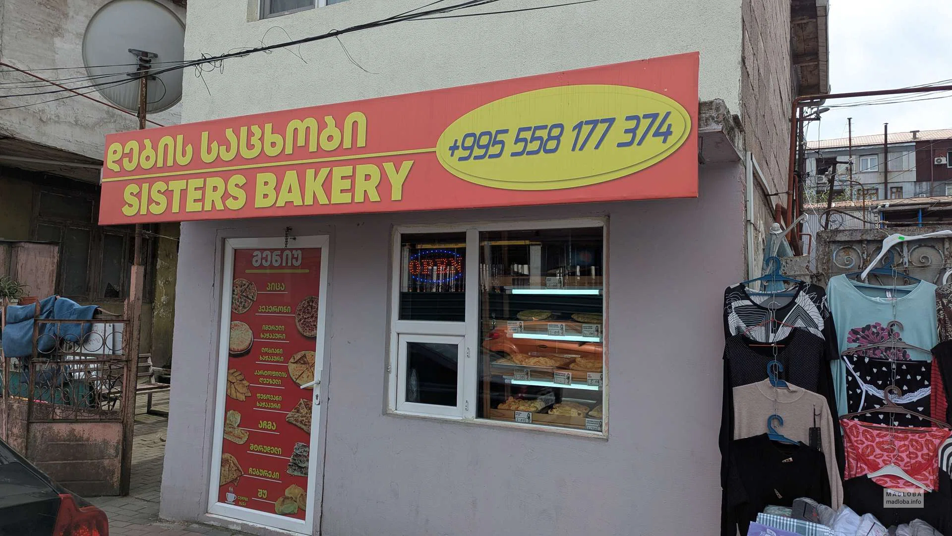 The menu includes pizza, imeruli, megruli, lobiani, samsa, achma and chvishtari. The products are baked on site and are suitable for both snacking and a full lunch.