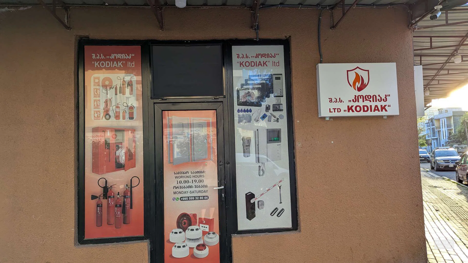 LTD Kodiak is a Batumi-based company that sells and installs fire-fighting equipment, alarm systems, and access control. The range includes fire extinguishers, smoke detectors, fire shields, video intercoms, electric locks, barriers, and other security equipment.