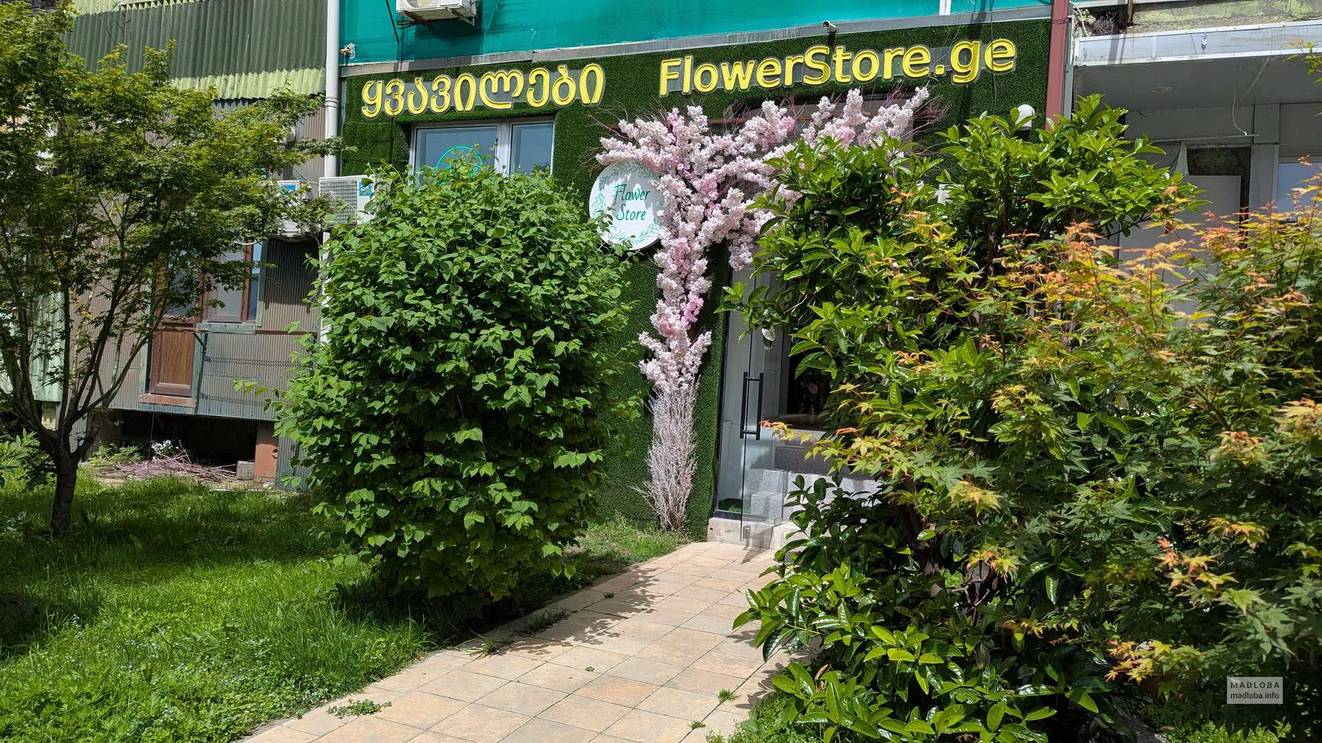 FlowerStore is a 24-hour flower shop in the capital of Adjara, decorated in a lively green style on the outside and decorated with a delicate flower arch at the entrance.