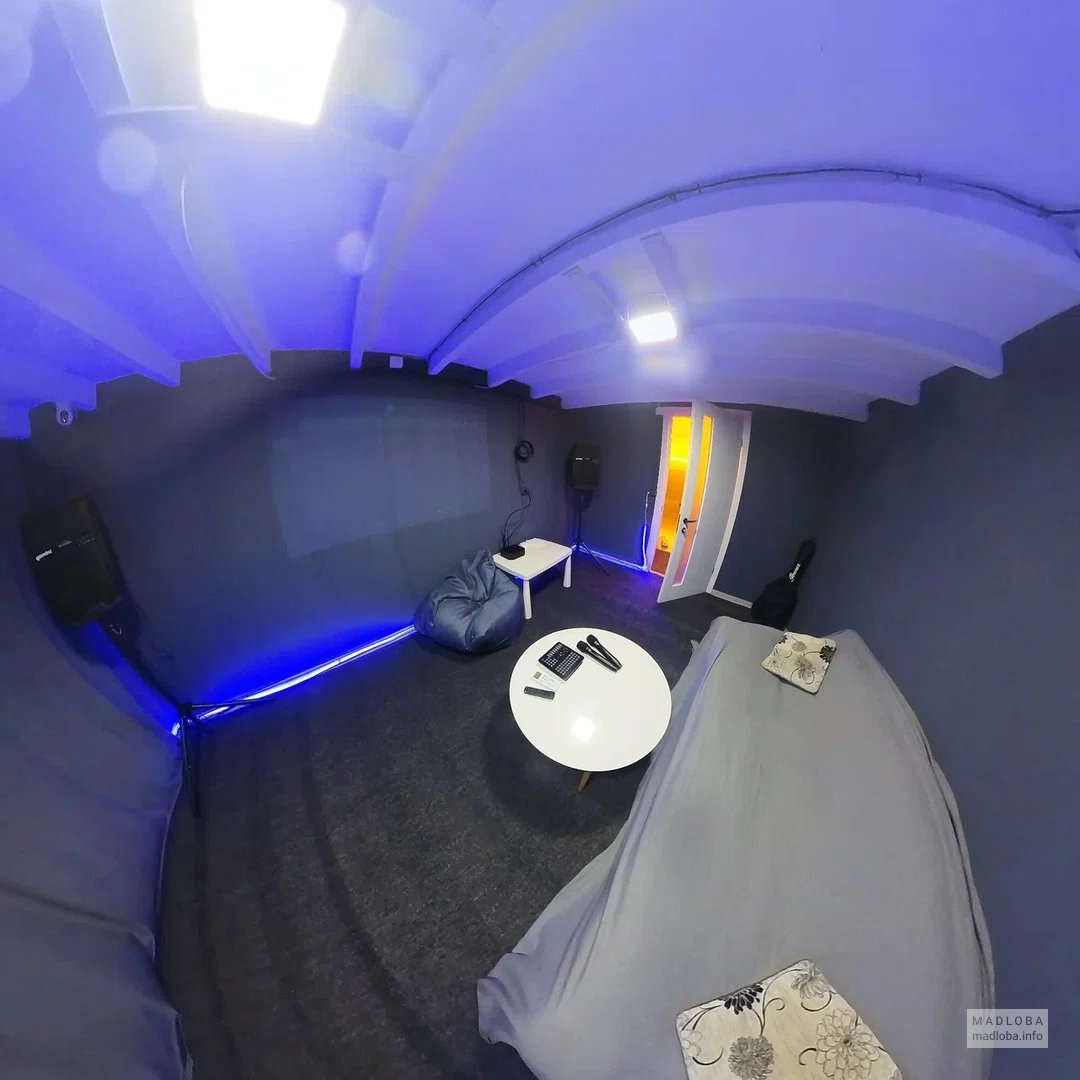 The studio room is wonderfully cozy. It's a great spot to hang out with friends and sing as much as you want. The people here are really nice.