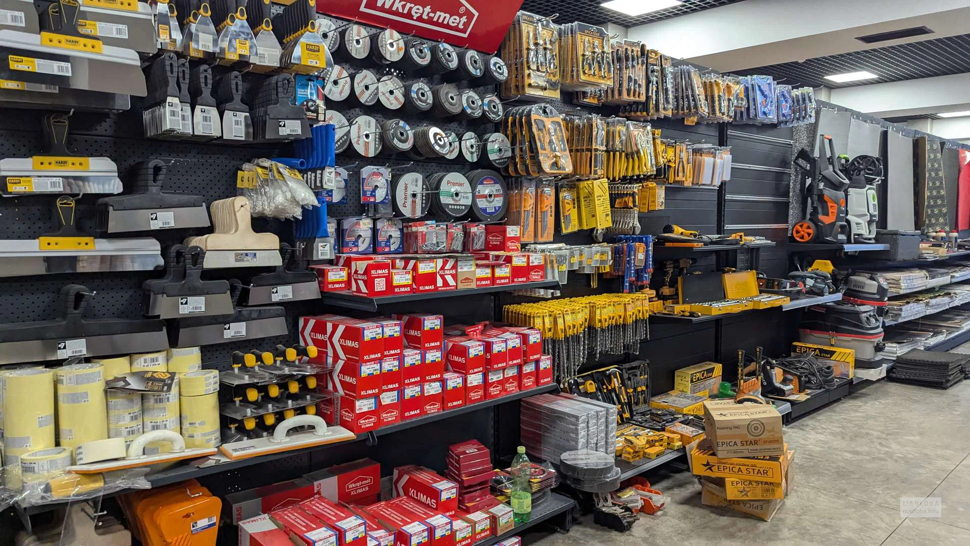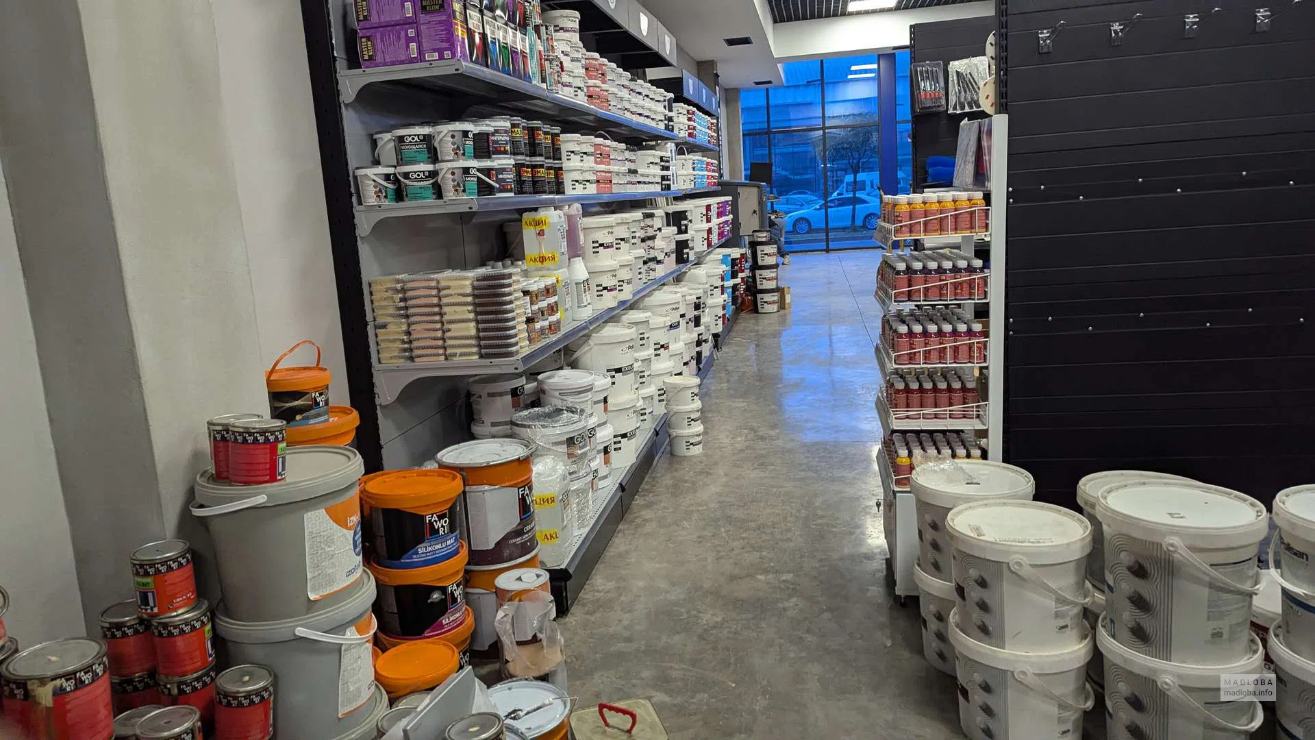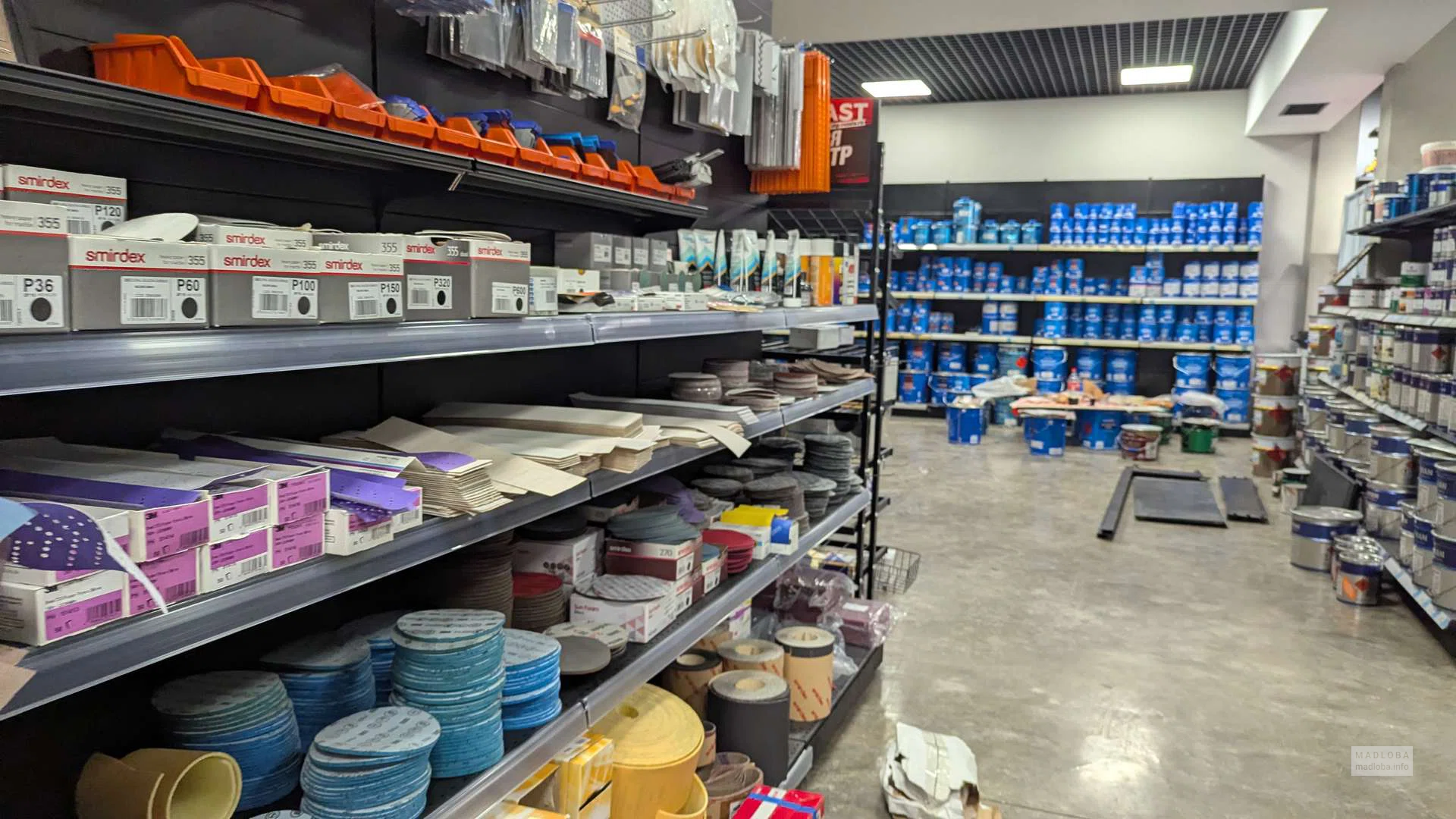 On sale: compressors, welding machines, polishing machines, construction guns, masking tapes, grinding wheels, respirators, adhesives and sealants. Convenient zoning and a spacious hall with a modern interior make it easier to find the right products.