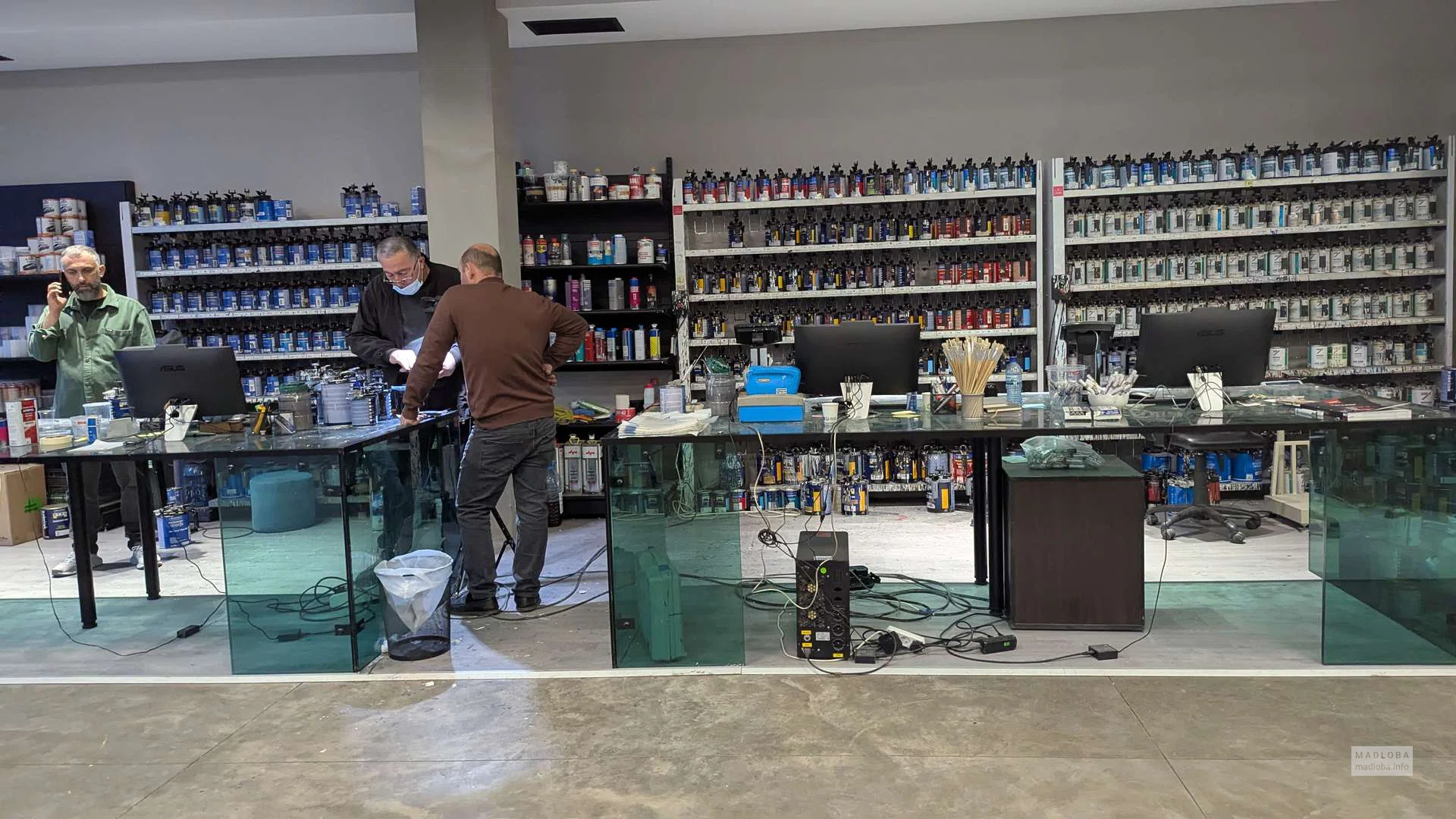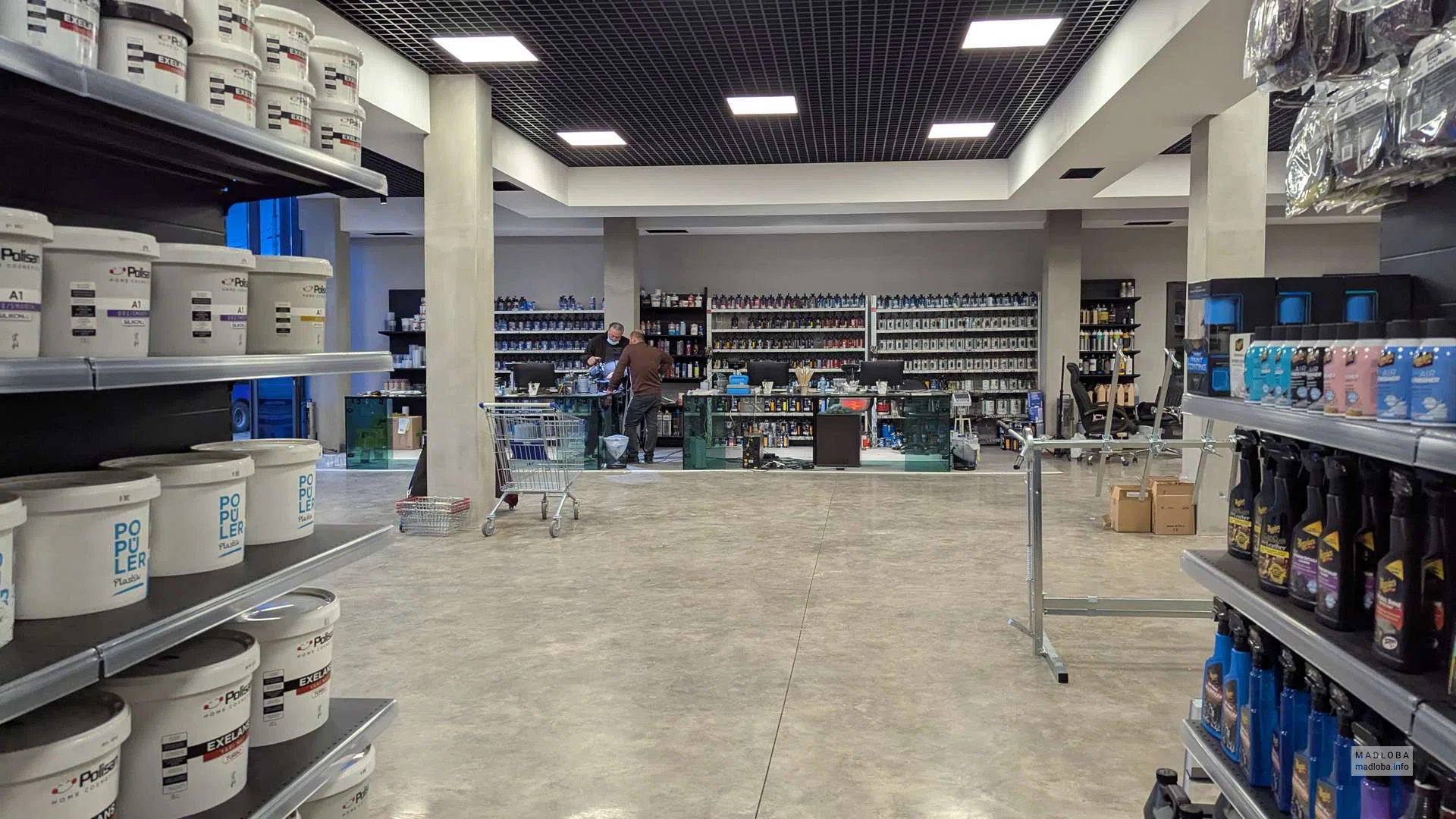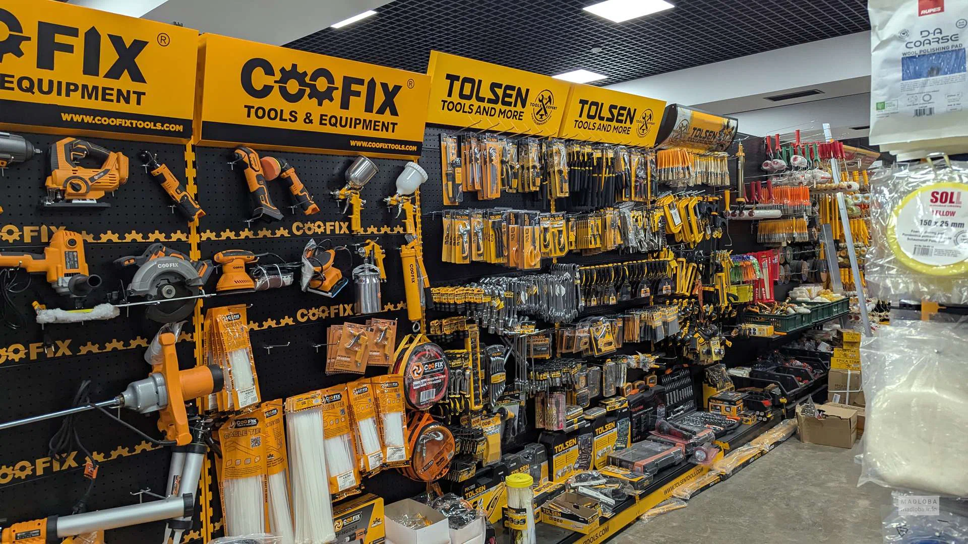 On sale: compressors, welding machines, polishing machines, construction guns, masking tapes, grinding wheels, respirators, adhesives and sealants. Convenient zoning and a spacious hall with a modern interior make it easier to find the right products.