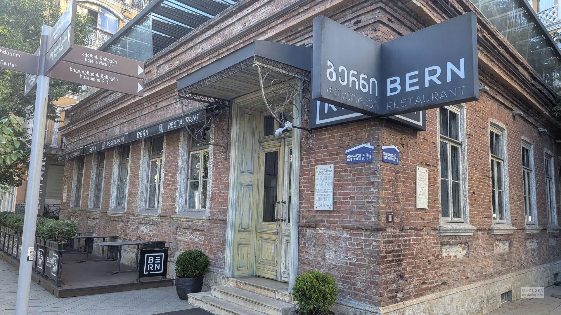 "A very cozy and beautiful restaurant ""Bern"" is located in the old center of Batumi, a stone's throw from Freedom Square. It is a two-storey old red brick building with an open terrace on the roof.