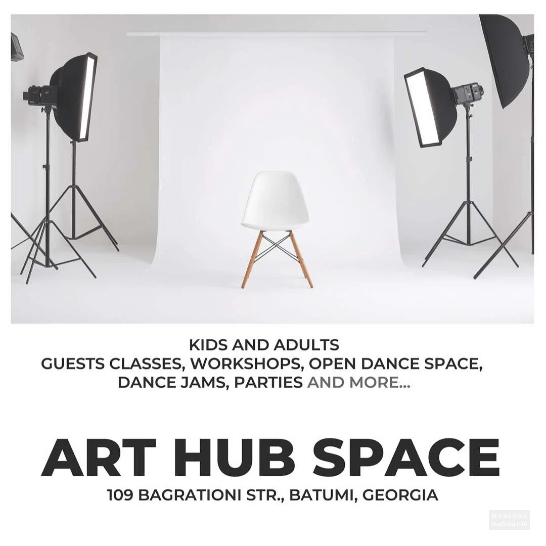 Photo studio "Art Hub Space", located in the center of Batumi, offers a wide range of services for photo and video shooting. It is the ideal place for photography professionals and beginners alike to pursue their creative ideas in a comfortable and aesthetically pleasing environment.