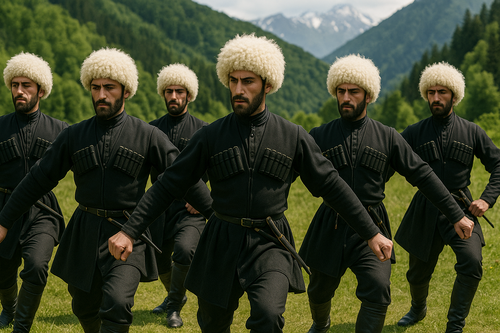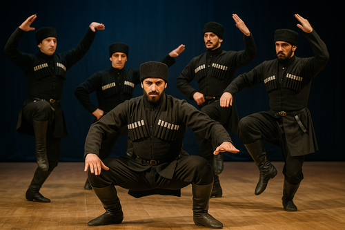 Perkhuli is a traditional male dance originating from the mountainous Svaneti. Its main feature is a synchronized performance in a circle or line, without musical accompaniment. The dance is performed in a restrained manner, with clear and strong movements, symbolizing the strength, unity and discipline of the mountaineers. There are no pompous steps in it - here reigns austere aesthetics and respect for collective harmony.