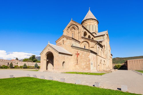 The temple is located in the very center of ancient Mtskheta, the former capital of Iberia, and for centuries remained the place of coronation and burial of Georgian monarchs. In architectural terms, it is a cross-domed church surrounded by a massive fence with towers and gates. Its strict forms are combined with refined carvings and bas-reliefs, many of which bear biblical, zodiacal and mythological motifs.
