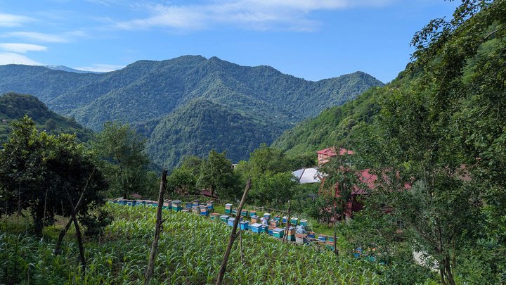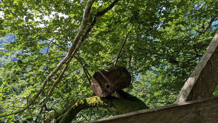 - 🐝 Hives on branches, similar to wooden barrels - an unusual apiary!