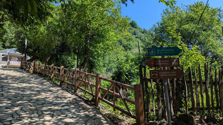 Buses: 77 (Batumi – Shuakhevi) Marshrutkas: 166, 172, 174, 202, 205 Get off at Adjarianskali stop, then 2.5 km uphill on foot. |
