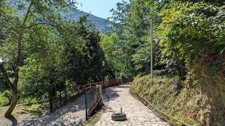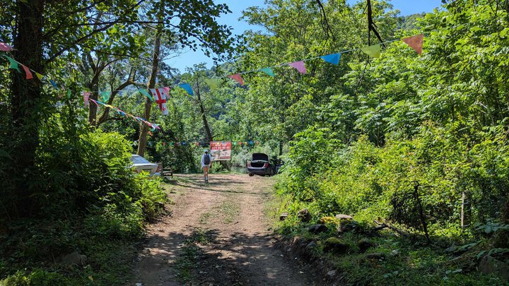 | 3.7 km, approx. 10 minutes. Winding road, average condition. | ~3 GEL |
