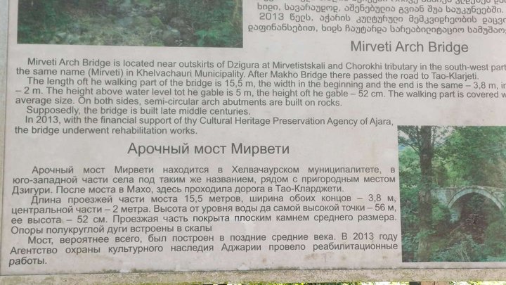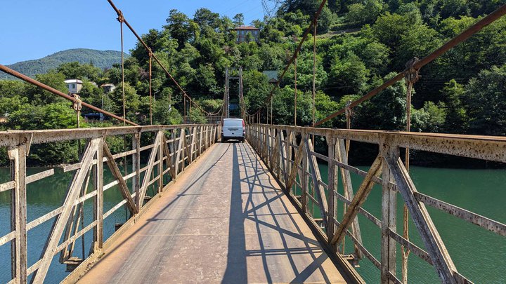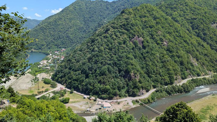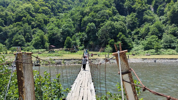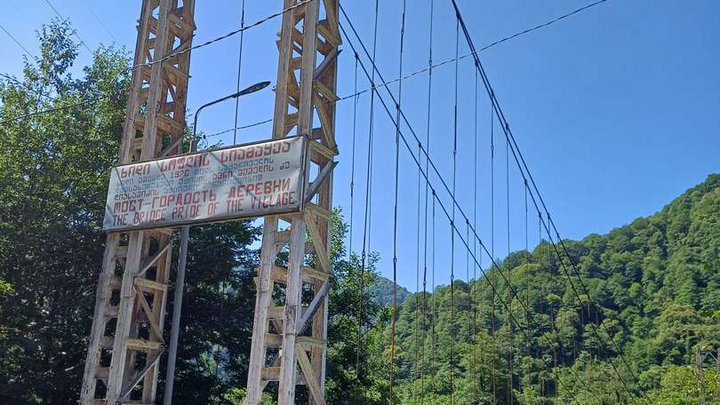Mivreti is the most "civilized" point of our route: a paved path leads here, there is an equipped observation deck, the arched bridge of Queen Tamara and even boat rides on the Chorokhi River. But first you need to cross a unique suspension bridge, which the locals themselves call "The Pride of the Village" (on the maps it is marked simply as Suspension Bridge). The village collected money from the whole world and built it with its own efforts - hence the name.