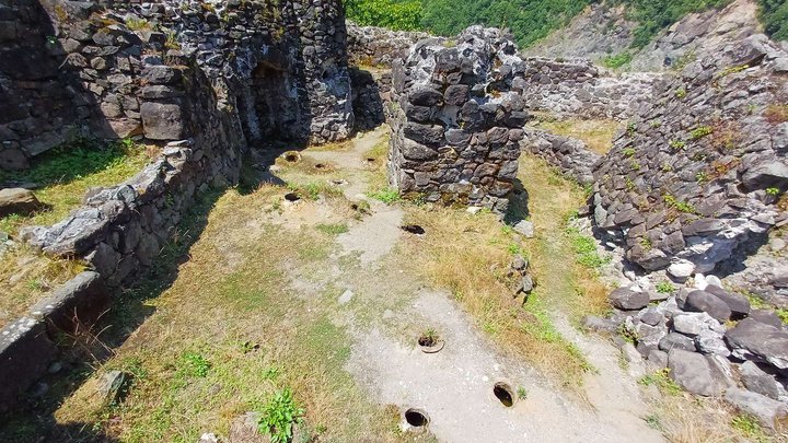 - 🏯 Fortress ruins: ancient walls that you can walk on; huge qvevri have been preserved inside.