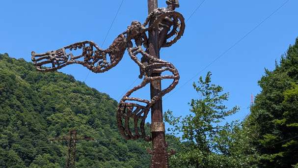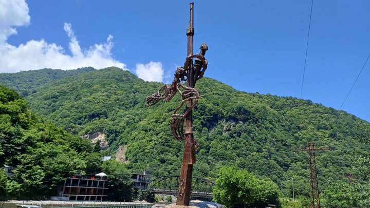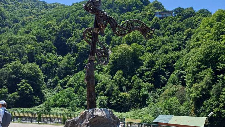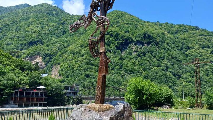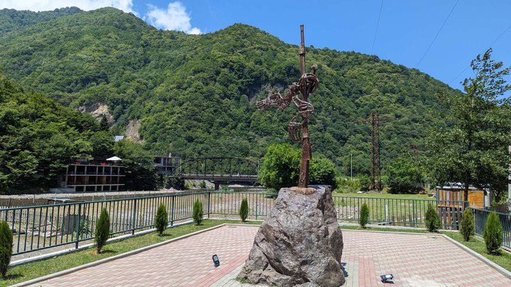 🗿The monument to the Machakhela gun is located at the approach to the bridge. It was here, in the Machakhela Valley, that legendary guns with a long barrel were produced in the 19th century - every gunsmith in the Caucasus knows the glory of the "Georgian flint".