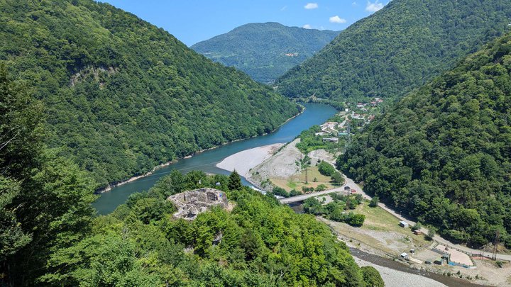 After a busy day and conquering the Gvara fortress, on the way back to Batumi it is worth making another short stop - at the confluence of the Chorokhi and Adjaristskali rivers.