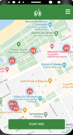 - via the Batumi Bicycle mobile app, available in the App Store and Google Play;