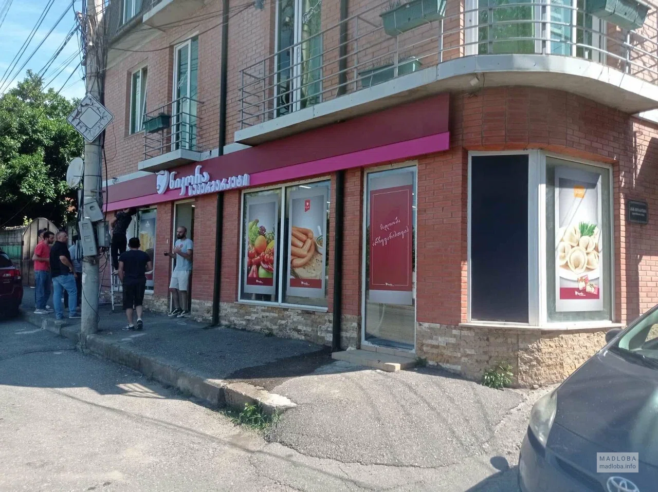 Nikora Supermarket is a grocery store with frozen food and baked goods on Solomon Pirveli Street in Kutaisi
