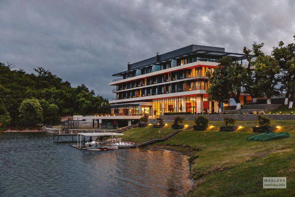 Kvareli Lake Resort, located on the shore of the lake in Kakheti, is a stylish modern hotel surrounded by forest and towering over the Alazani Valley. With a capacity of up to 200 guests both in the hotel and in the restaurant, the place is ideal for weddings, corporate events and private parties. A banquet hall, a picturesque pier, and a lawn create ideal conditions for any event. Kvareli Gardens is located nearby, with a restaurant and a guesthouse resembling an ancient chapel. The variety of activities includes fishing, hiking, spa and master classes in Georgian cuisine. More information about the place can be found on the website.