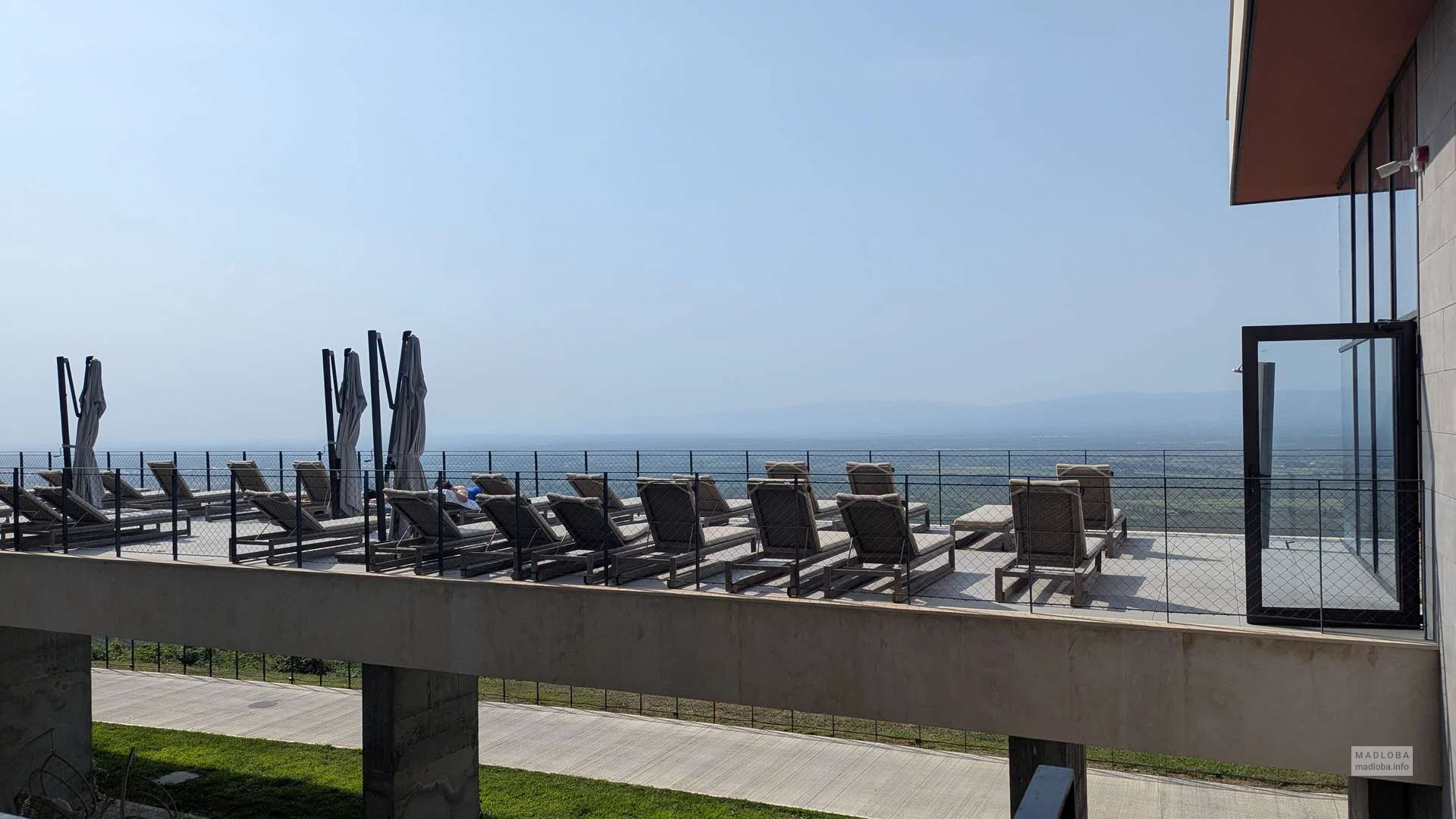 У отеля отличное местоположение в предгорье: с одной стороны прекрасный вид на Алазанскую долину, с другой - на озеро Кварели и горы. Очень умиротворяющее место. Большая относительно закрытая территория.