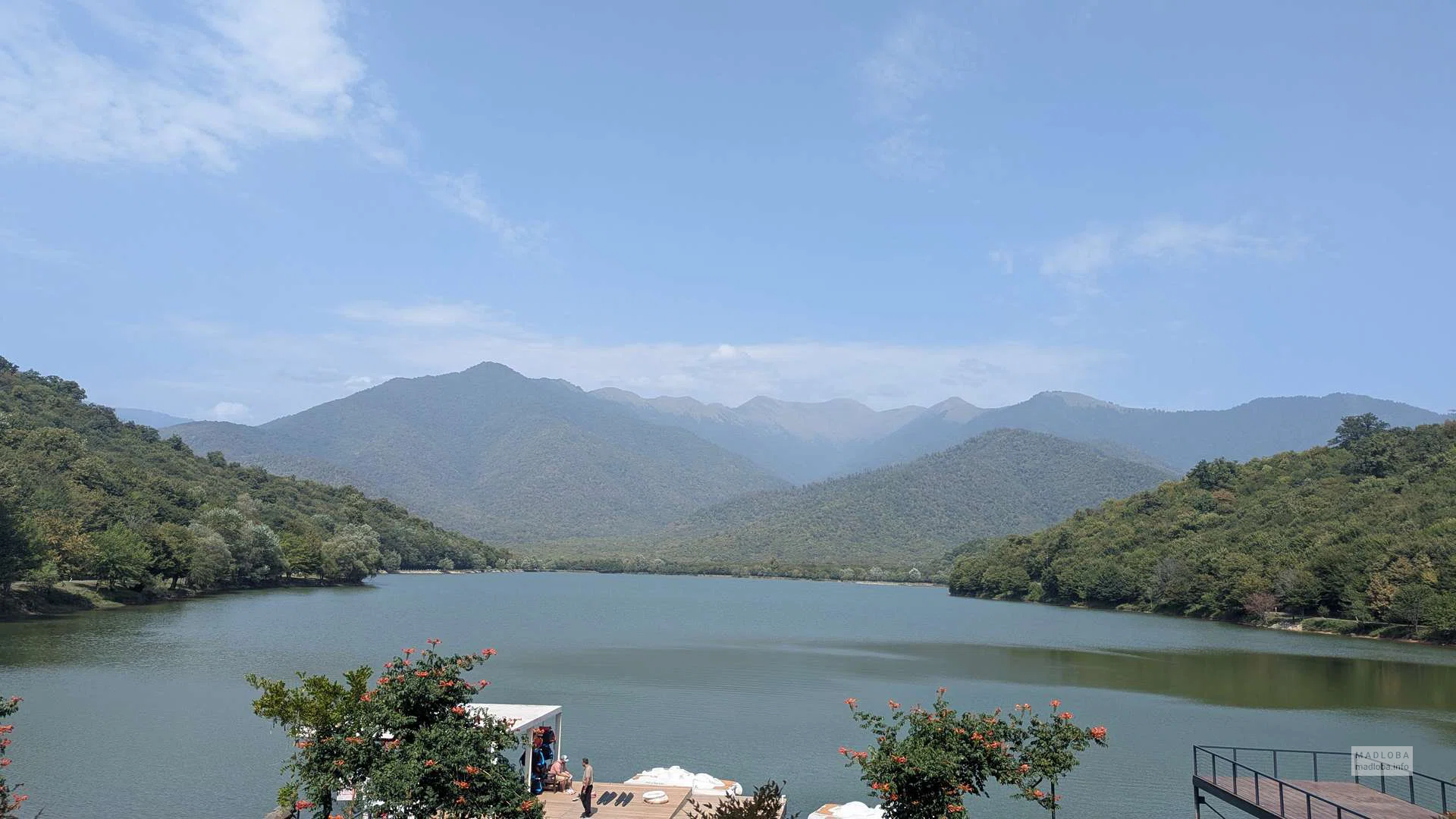 Потрясающий обед в ресторане с видом, от которого захватывает дух! Еда невероятно вкусная, как и всегда в Грузии. Персонал очень приветливый, а обслуживание — на высшем уровне. Особенно запомнился официант Ираклий, который устроил для нас настоящую фотосессию. Большое спасибо ему за чудесные снимки! Чтобы попасть на территорию, нужно сообщить на шлагбауме, что вы собираетесь в ресторан или просто прогуляться у озера. Въезд доступен в основном для гостей отеля.
