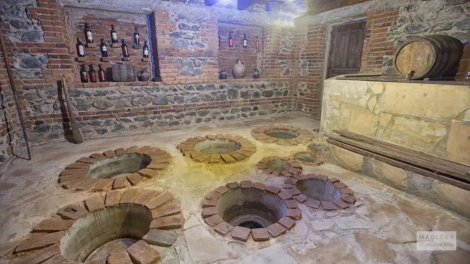 The assortment includes white and amber wines, rare local varieties, and the atmosphere in the cellar is conducive to long conversations and leisurely toasts to Georgian hospitality.