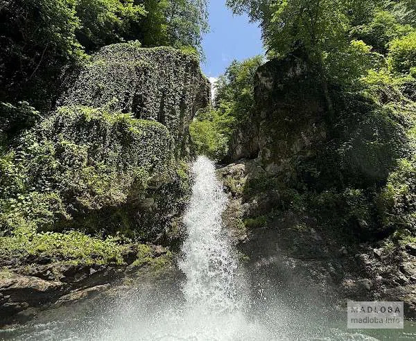 The waterfall itself is the epicenter of peace: the water falls between green rocks, from where cool, refreshing foam rolls down. Bright reflections on the water or rainbows in the sun make the place even more photogenic.