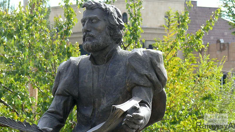 Nothing powdered – an ordinary pomegranate branch with a musical instrument panduri and all this on parchment with the poet's poems. If you are looking for simple compositional solutions, without excessive pomposity and compromise, so that everything is simple and tasteful, but in no case do not pass by the monument to Sayat-Nova!