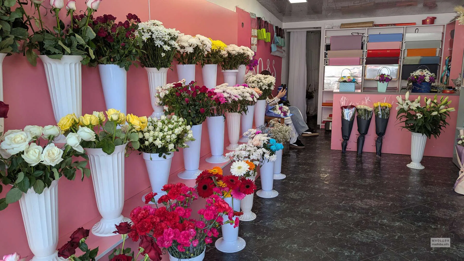 გაყიდვაშია - ვარდები, გერბერები, ქრიზანთემები, ტიტებიდა სხვა სეზონური ყვავილები. ხელმისაწვდომია ლამაზი შეფუთვა, ლენტები და ყვავილების აქსესუარები.